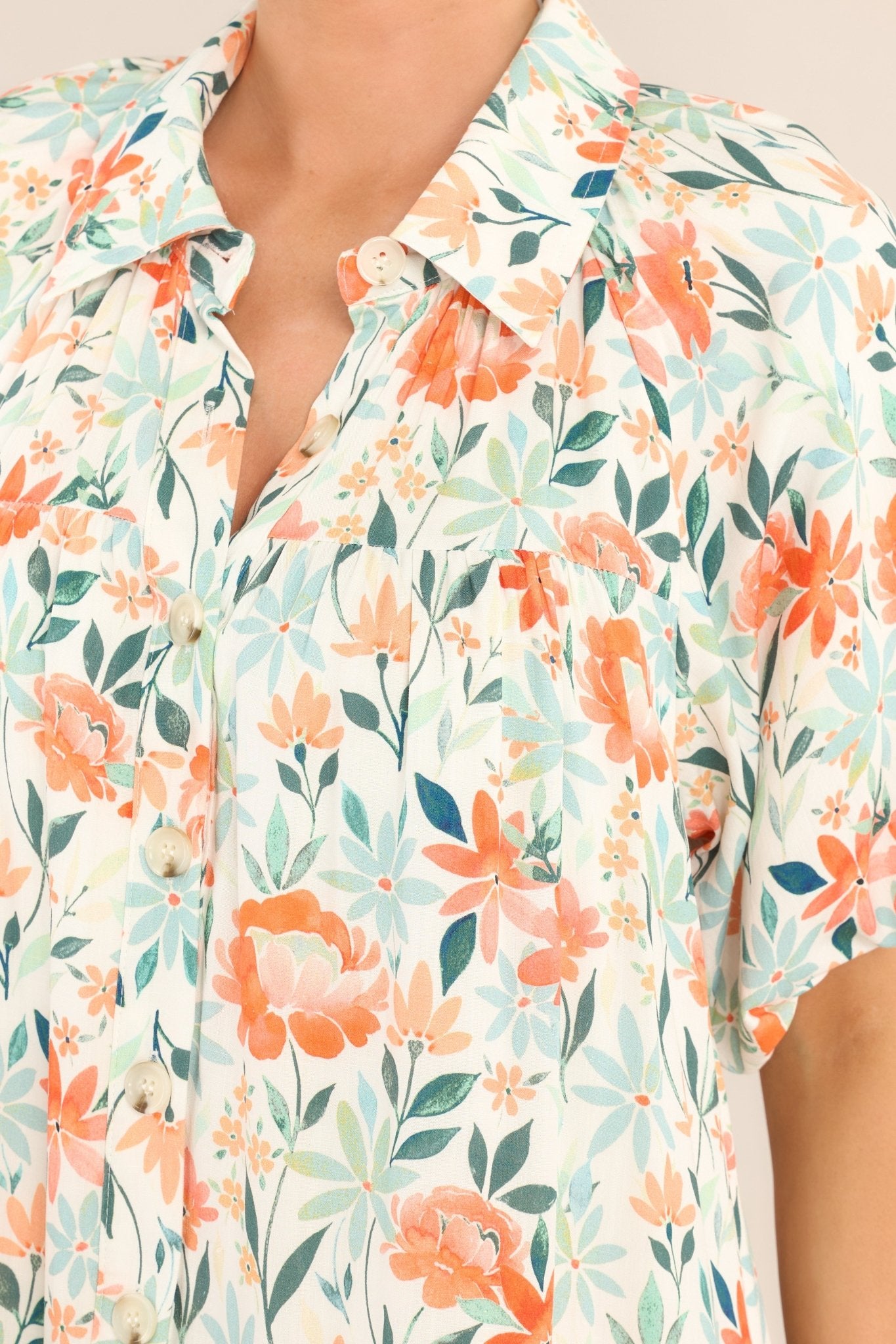 Discover your happy place with the Happiness Found Orange Floral Button Front Mini Dress. Perfect for sunny days with its flowy silhouette and comfortable fit, this mini dress will put a smile on your face and keep you stylish all day long. Find your happiness wherever you go in this charming dress.