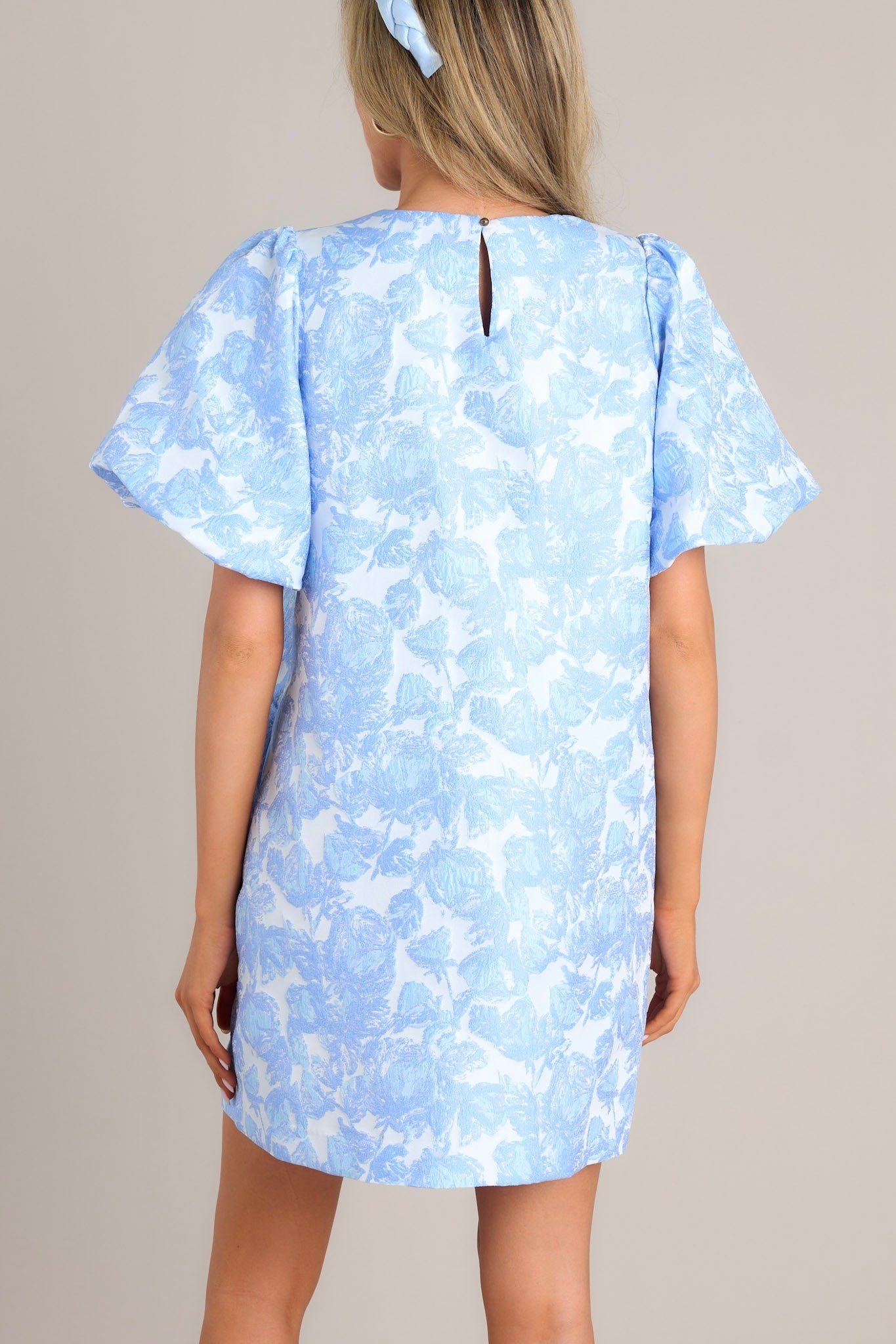 Get ready to brighten up your days with our Misty Mornings Light Blue Floral Mini Dress! This dress features a stunning floral pattern, perfect for adding a pop of color to your wardrobe. The lightweight material is perfect for staying cool and comfortable on those hot summer days. Stand out from the crowd and embrace your playful side with this quirky and fun dress! This dress features a v-neckline, a keyhole with a button closure, a textured material, functional hip pockets, and elastic cuffed puff sleeves.