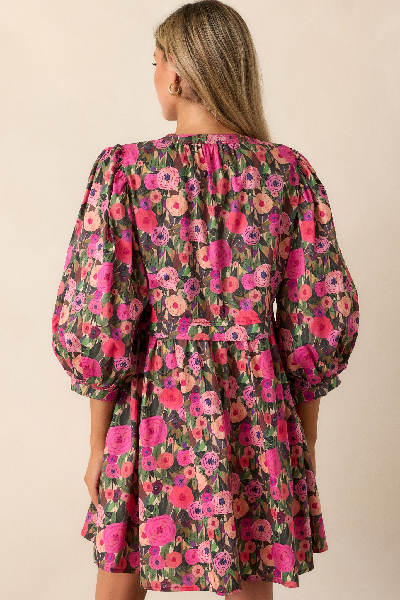 Effortlessly chic and comfortable, our Wandering Hearts 100% Cotton Pink Floral Mini Dress is perfect for any occasion. Made with 100% cotton, this dress features a beautiful pink floral design that is both stylish and feminine. This dress will have you feeling confident all day long. This pink mini dress features a split neckline, pleated yoke detailing, a-line cut, functional hip pockets, a beautiful floral print and 3/4 puff sleeves.