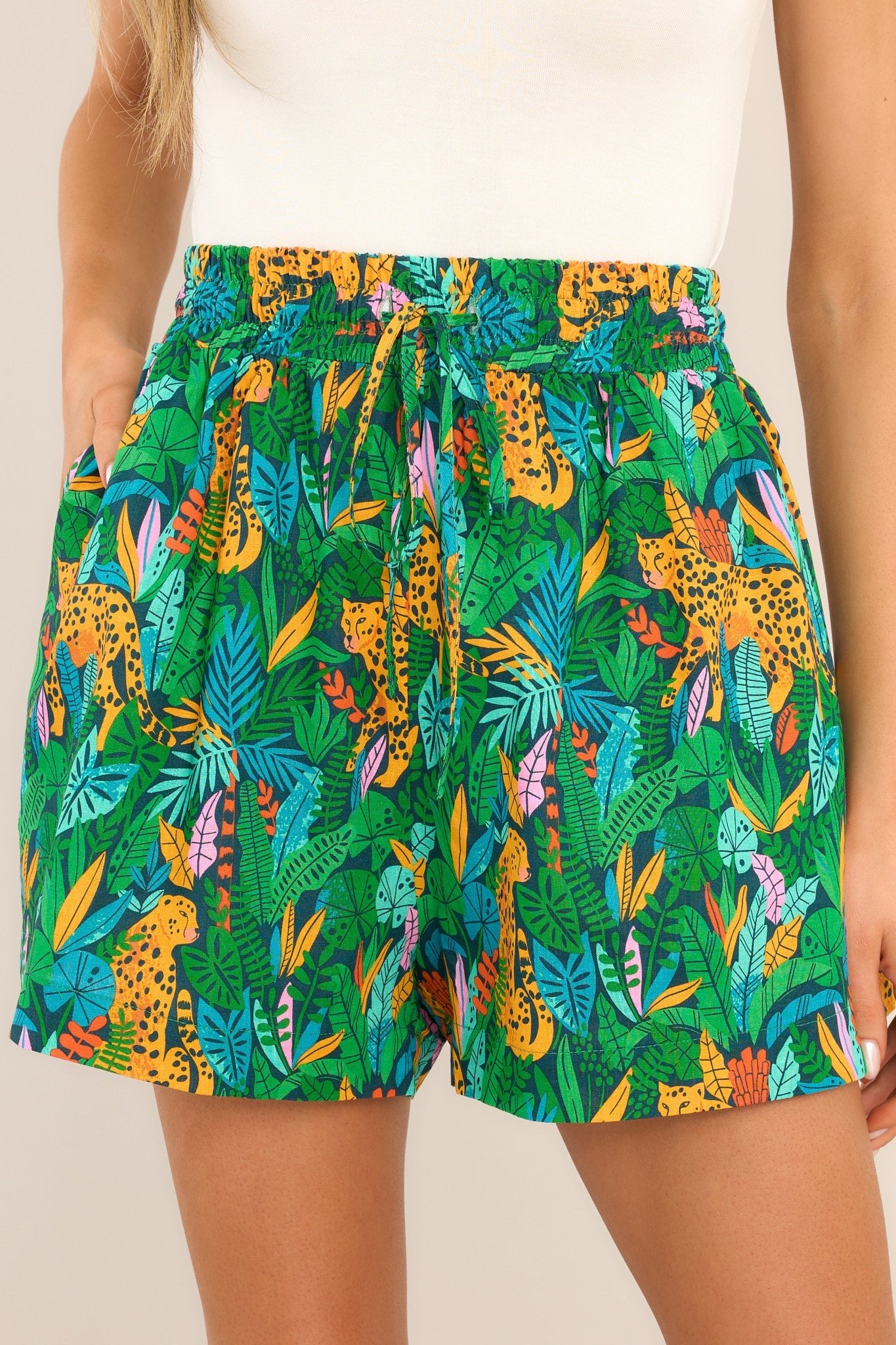 Feeling Wild Green Yellow Print Shorts Palms Away