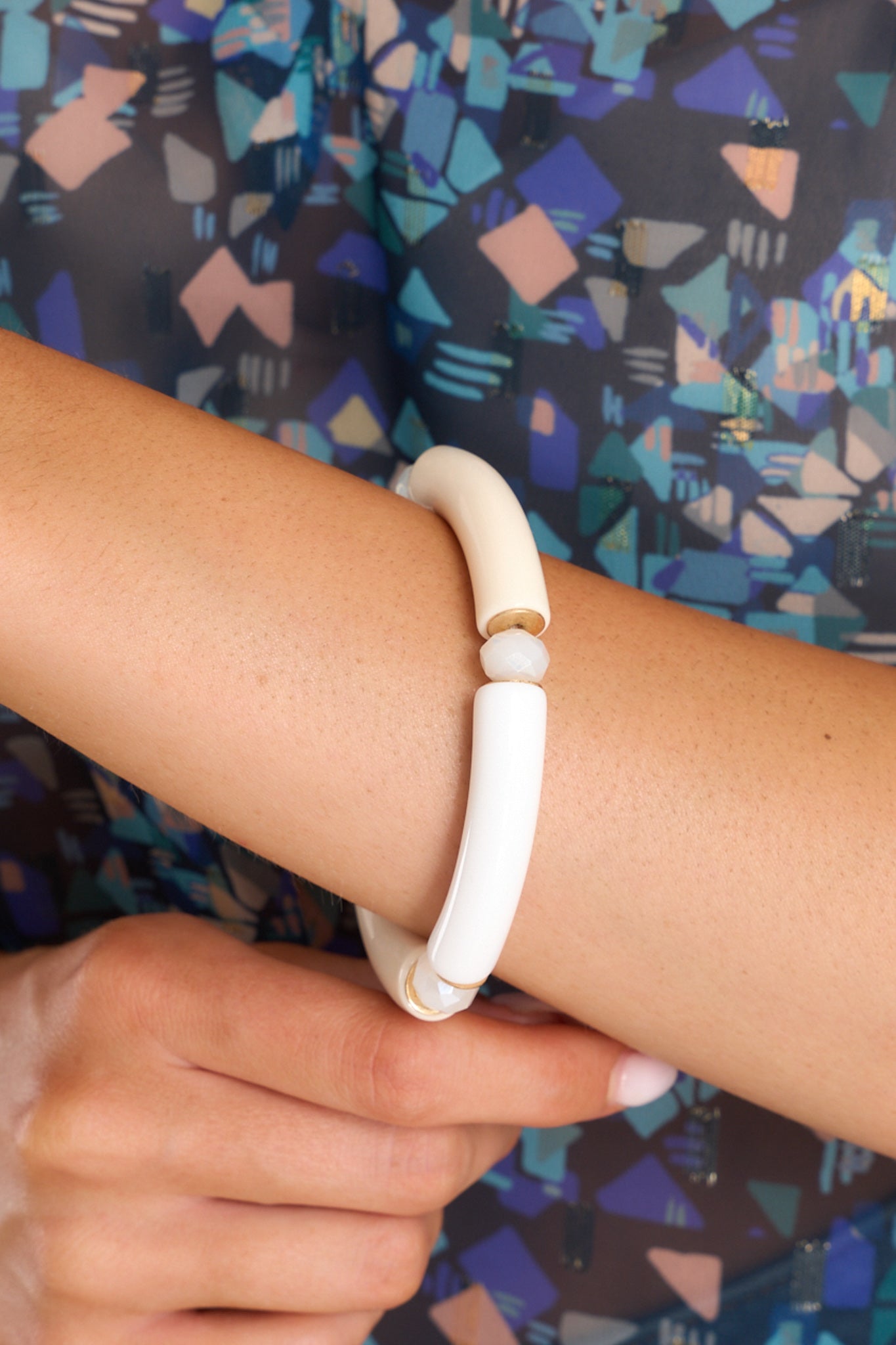 Be ready for a fresh start with this New Start White Bracelet! Perfect for a casual night out, its delicate design and shimmering finish ensure you'll stand out from the rest! So don't hesitate, put it on your wrist and turn heads! This bracelet features alternating white and crystal beads, with an elastic band underneath. Bracelet measures 3' in diameter • Imported