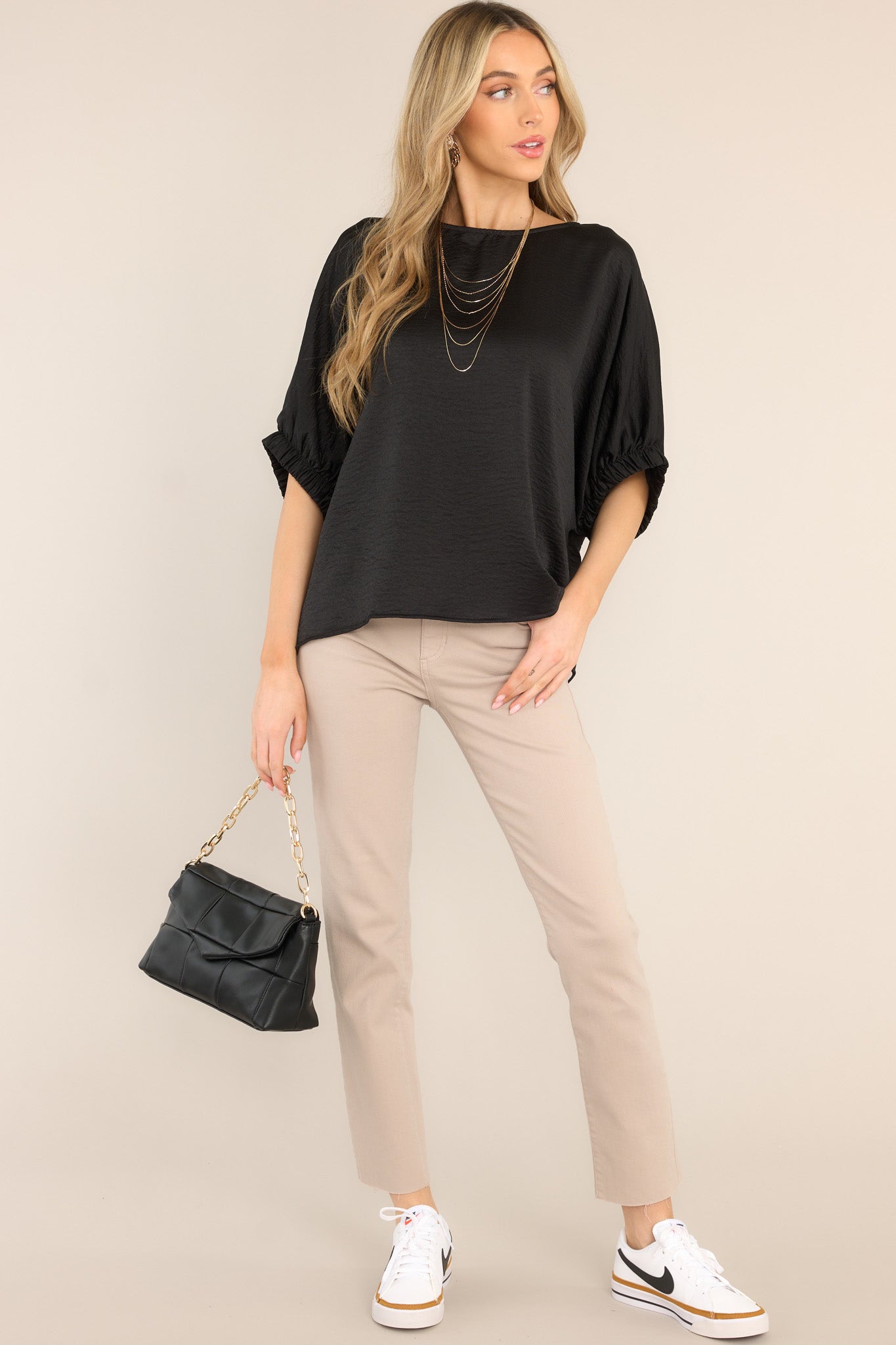 Get ready to rock the town in our All About The Girl Black Top! With a flowy design and soft ivory color, this top is perfect for any occasion. So go ahead, be the center of attention and show off your fun and playful side in this stylish and unique top!