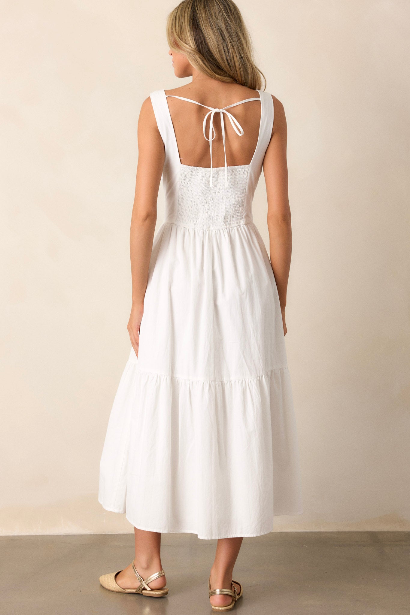 The Callie White Cotton Cut-Out Maxi Dress adds a touch of sass to your wardrobe. The crisp white color and strategically placed cutouts at the waist create a flattering silhouette. Perfect for a night out or a summer day, this dress will make you feel confident and stylish. This dress features a v-neckline, bamboo circle detail, waist cutouts on both sides, a self tie at the back of the straps, and a smocked insert in the back of the bust.