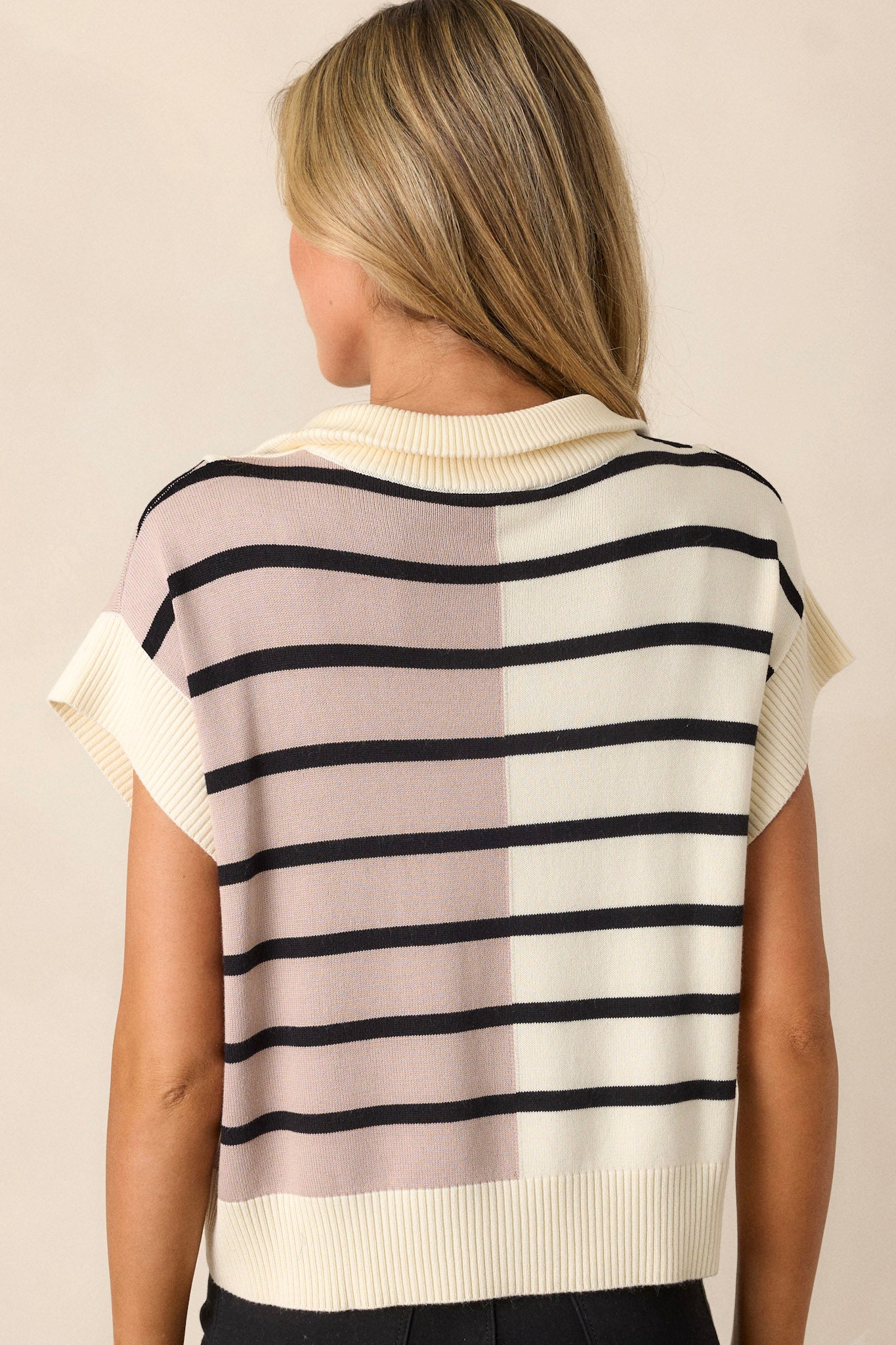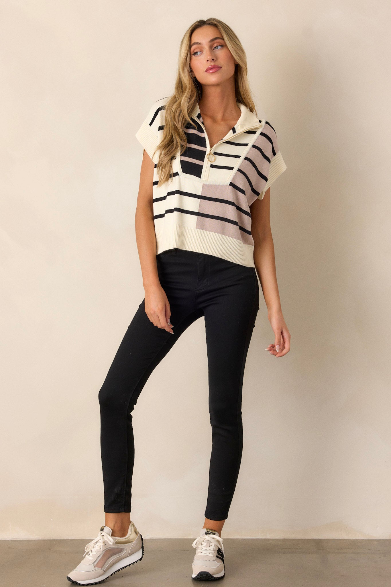 Bold Bands Beige Stripe Half-Zip Sleeveless Sweater