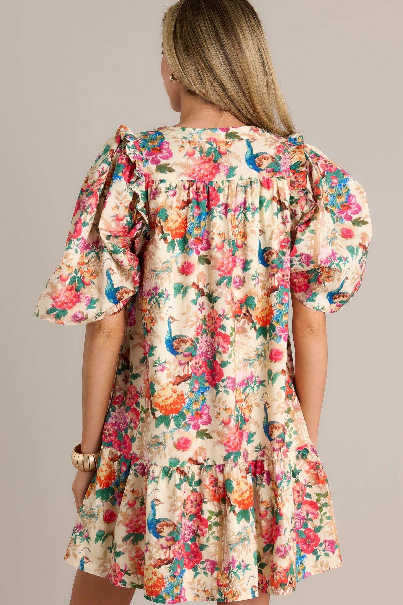 Get ready to flutter into style with the Butterfly Bliss Ivory Floral Print Dress! Featuring a whimsical butterfly motif and delicate floral print, this dress is perfect for adding some playful fun to your wardrobe. The lightweight fabric keeps you cool and comfortable, while the flattering silhouette will have you feeling confident and chic. Don't miss out on this unique and charming addition to your closet! This ivory floral dress features a v-neckline, pleated details on the bust and hips, a tiered design, functional hip pockets and puffer sleeves.