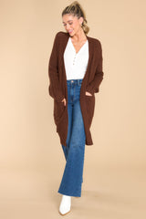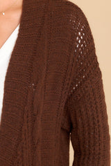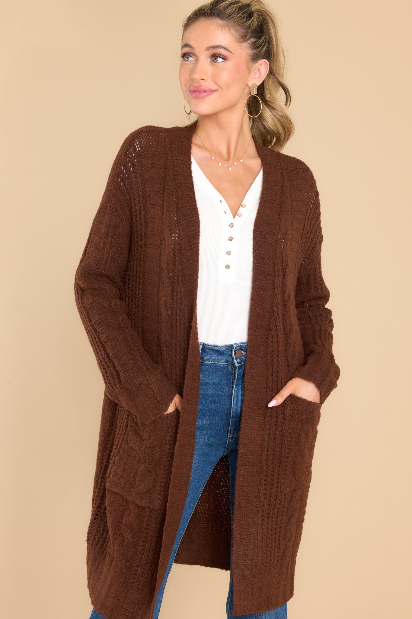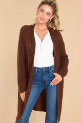 Cozy up in front of the fireplace with this comfy, knitted sweater! It's the perfect piece to keep you relaxed and stylish- so you can look good while keeping warm. Get ready to bask by the fireplace! This cardigan features an open-front design, long sleeves with tapered cuffs, functional pockets, and a soft knit feel throughout. Model is wearing a small. • 65% Acrylic, 35% Polyester • Hand Wash Cold• Unlined • Imported