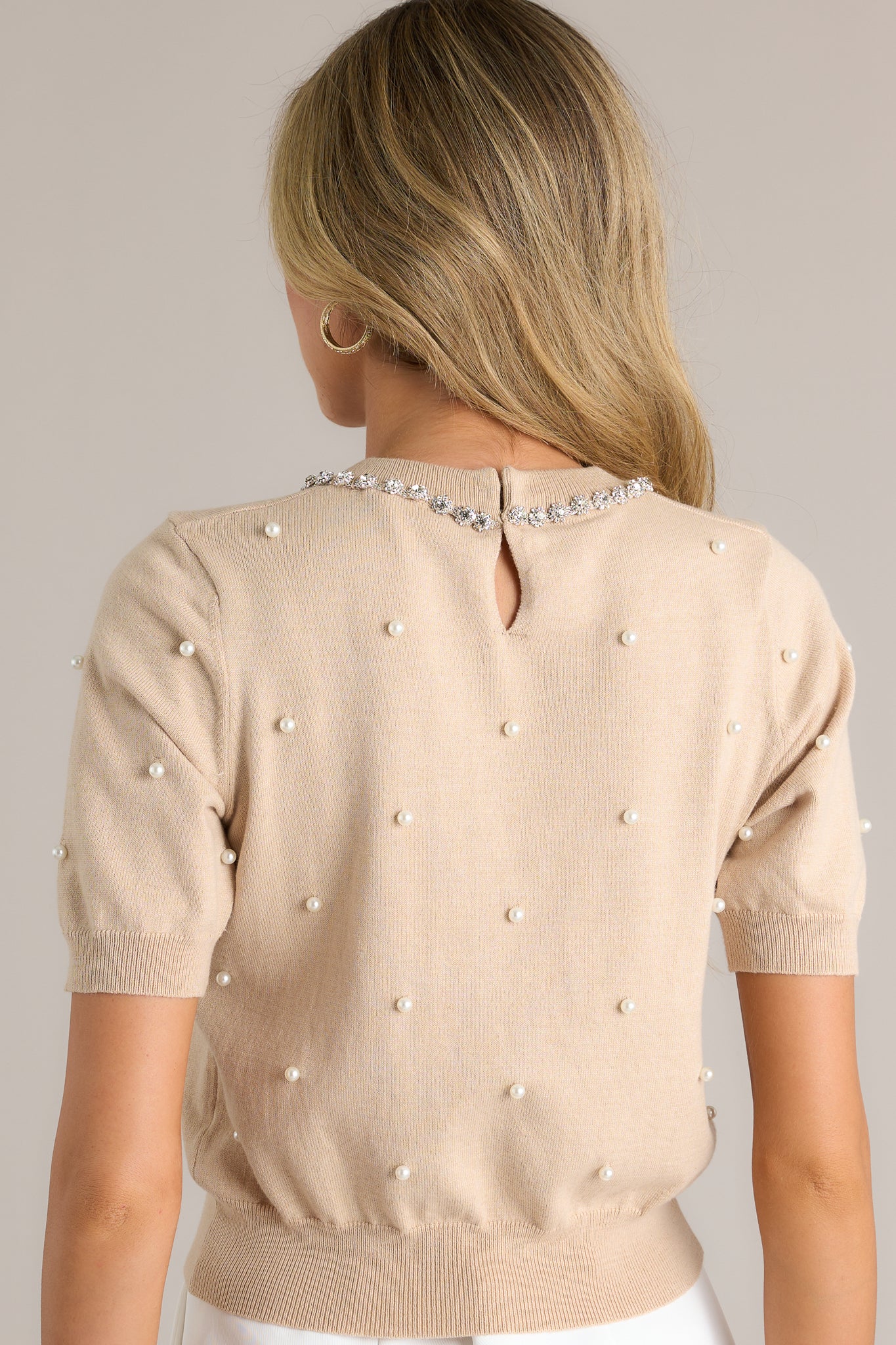 Casual Class Beige Short Sleeve Faux Pearl Top