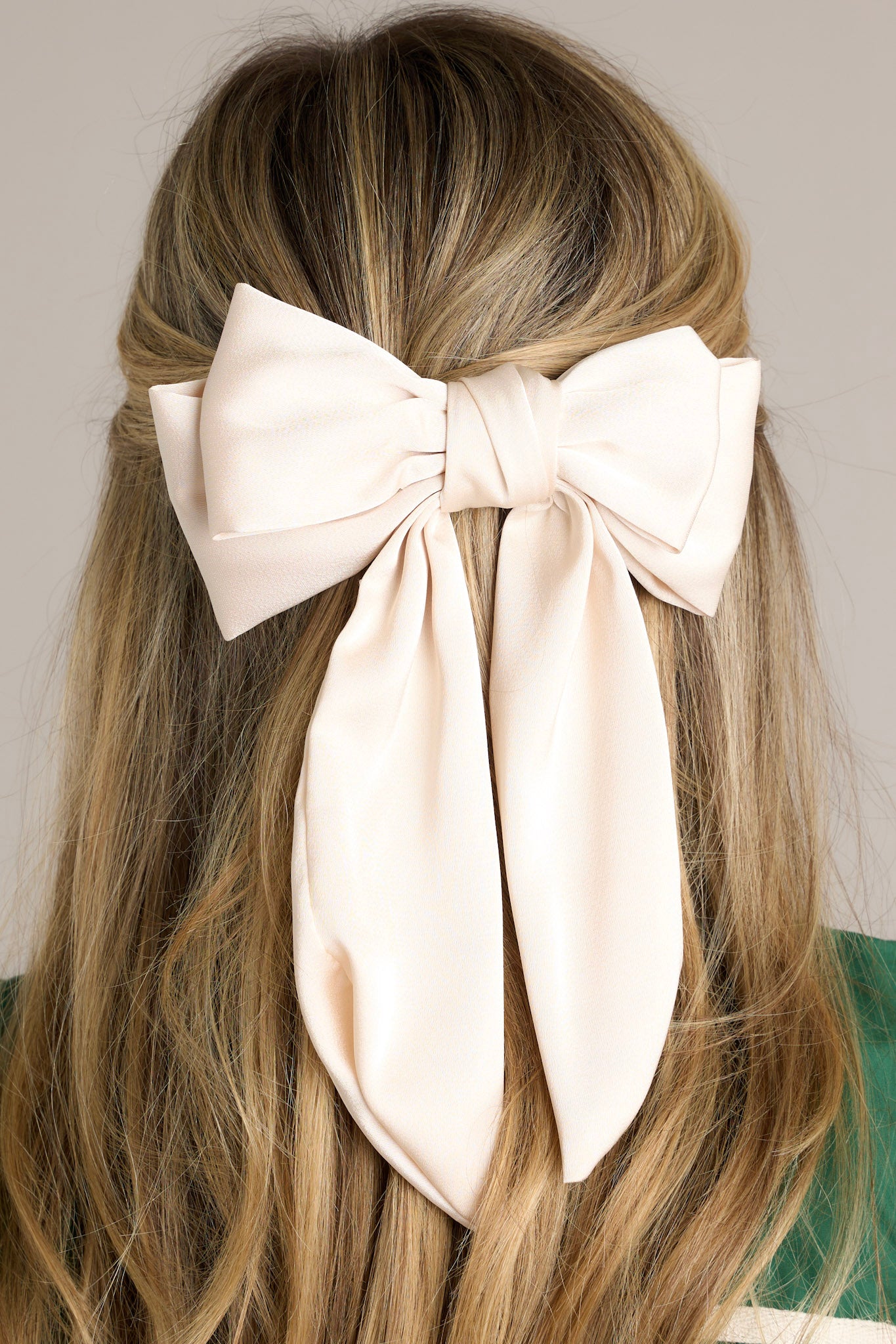 Get a clean cut look with our Ivory Clip In Bow! This quirky accessory adds a playful touch to any outfit. Simply clip it in and voila! Say goodbye to bad hair days and hello to effortless style. This ivory clip in bow features a classic layered ribbon bow, and a silver French style barrette.