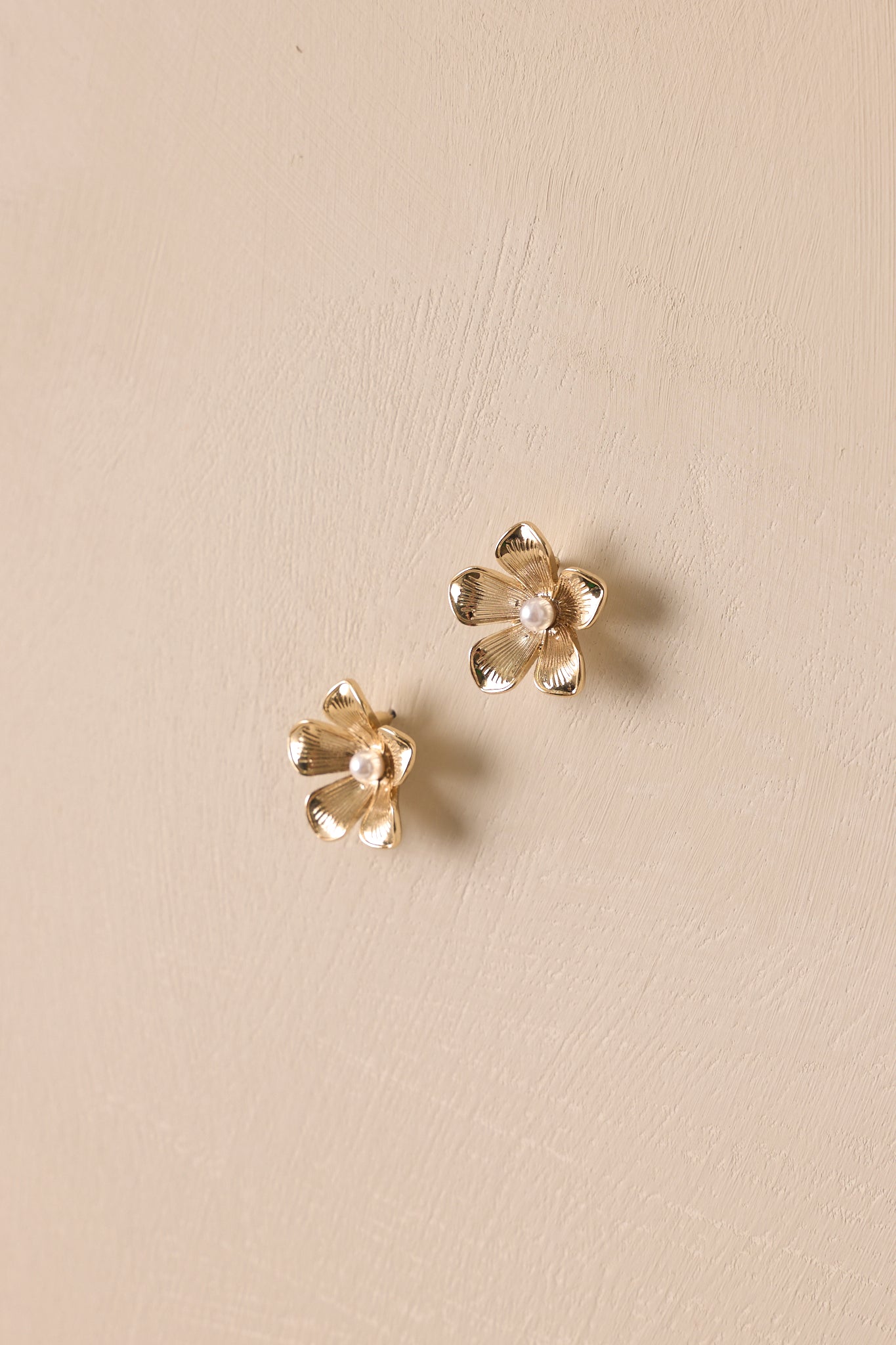Elevate your style with these Clear My Mind Gold Textured Floral Earrings. Unleash your inner flower child with their intricate design and lightweight feel. Say goodbye to cluttered thoughts and hello to effortless charm. These gold earrings feature a floral shape, a pearl center, and secure post backings.