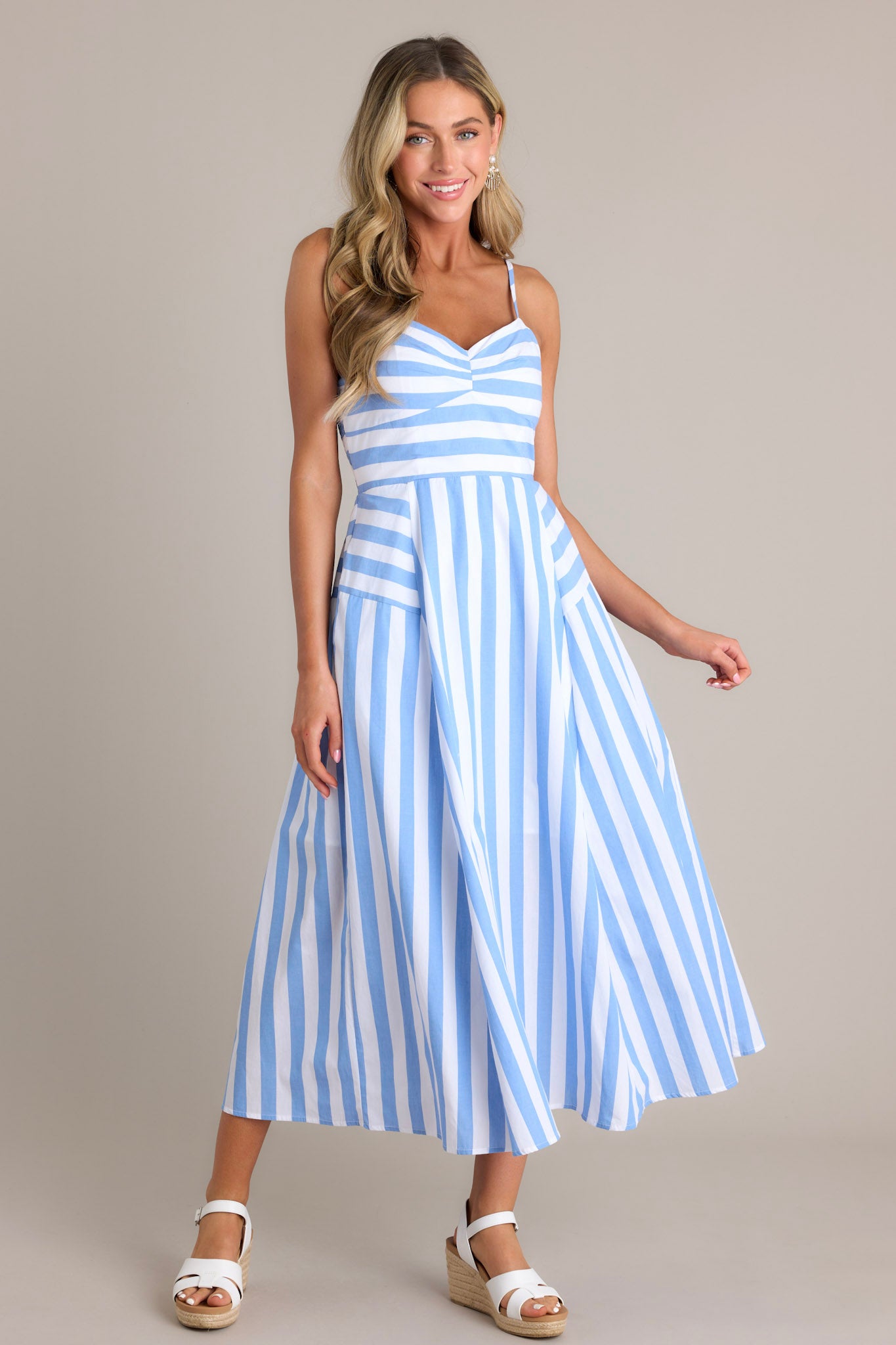 Coastal Cutie 100% Cotton Light Blue Stripe Midi Dress