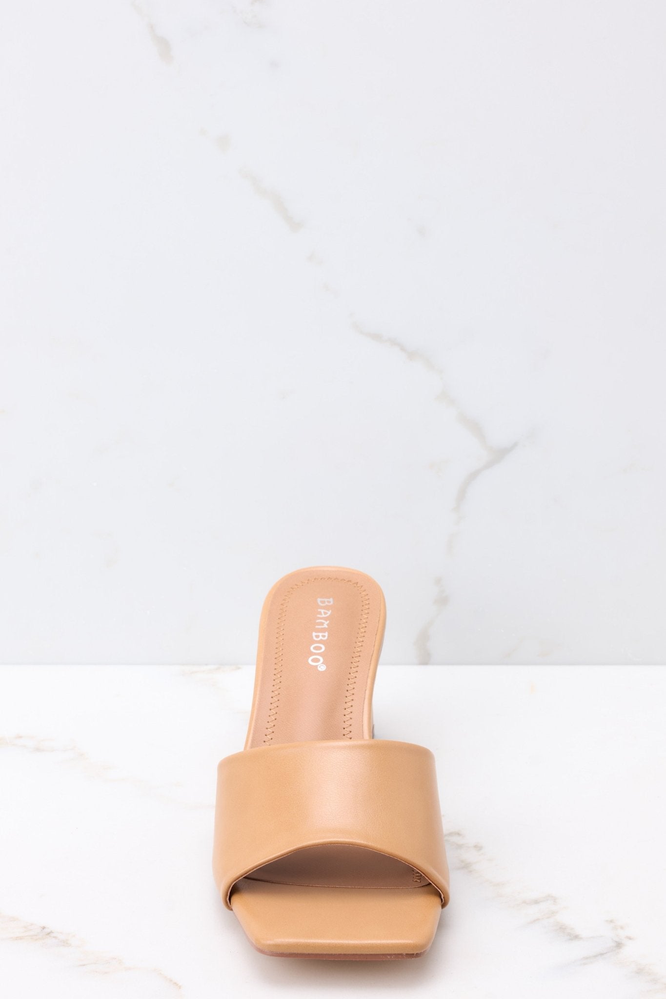Step up your style with our Come On Over Tan High Heel Sandal! This timeless classic is an absolute must-have. Perfect for work, date night, or any other occasion, these sandals will surely let you make a statement. These heels feature a square toe, a thick strap across the top of the foot, a square heel, a faux-leather finish , and a slip-on design. We recommend ordering your usual size. • Non-skid sole • Man-made material • Heel measures 3" • Imported
