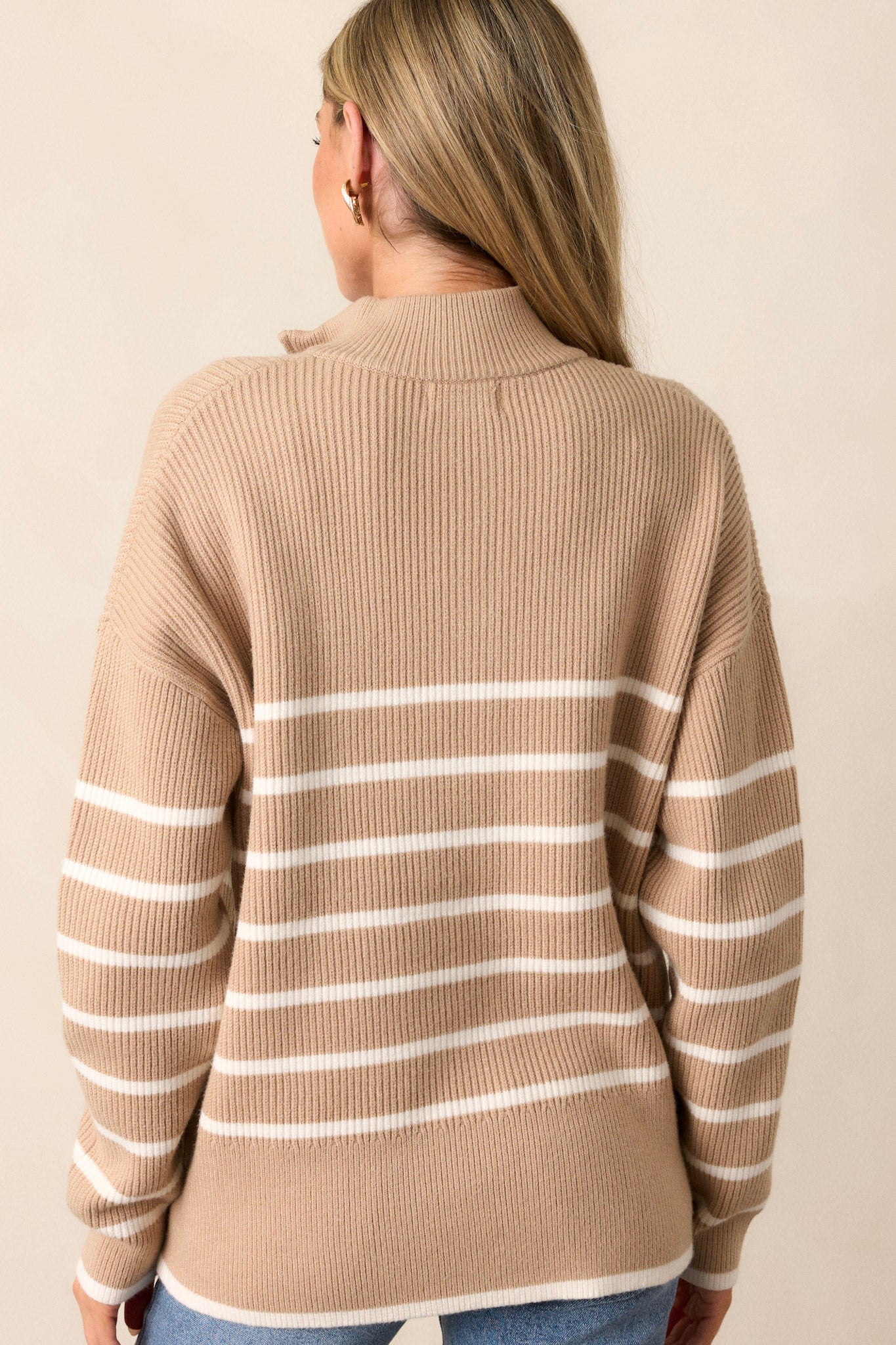 Comfort Cutie Khaki Stripe Quarter-Zip Sweater