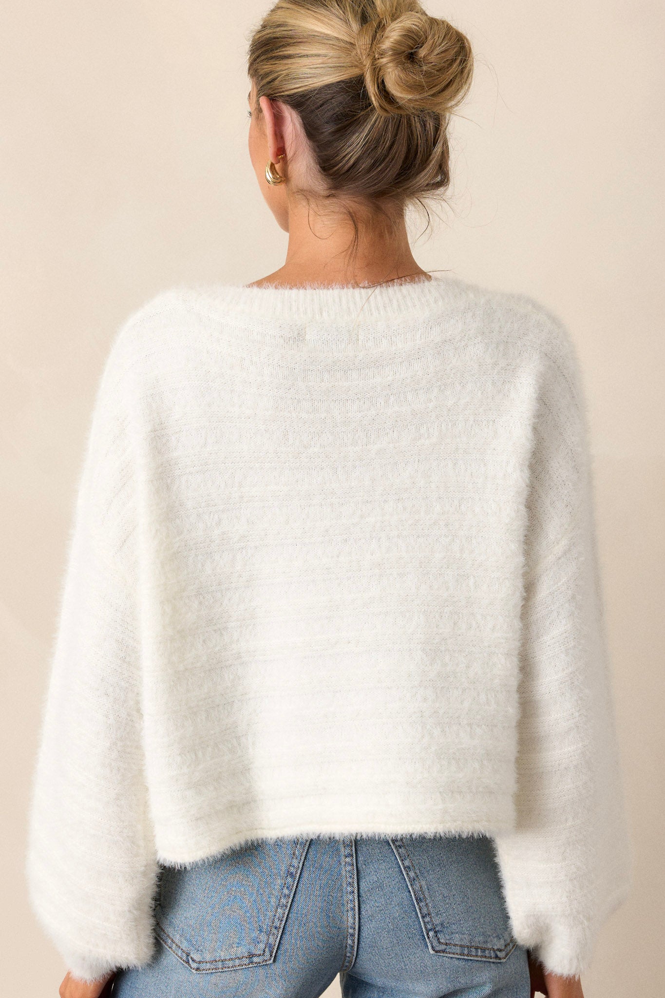 This Cozy Upgrade White Sweater will be your go-to for winter weather. The classic white shade keeps things basic and versatile, while the soft fabric ensures you stay comfy and warm. Upgrade your style with this essential layering piece! This ribbed sweater features a v-neckline and a slightly cropped length.