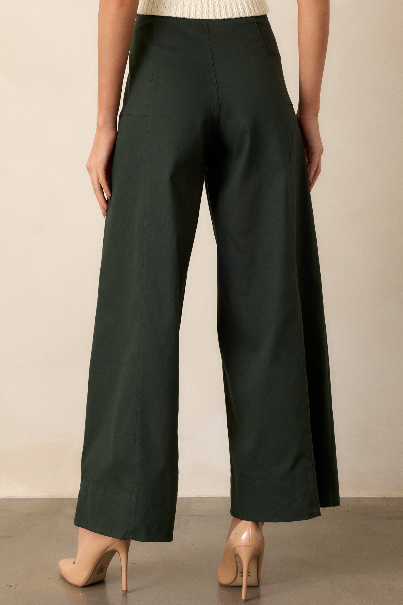 Unleash your bold and adventurous side with our Daylight Glimmer Forest Green Wide Leg Pants! These statement pants feature a stunning glimmer effect that will turn heads wherever you go. The wide leg design offers a comfortable and flattering fit, perfect for taking on any challenge with confidence. Elevate your style and stand out from the crowd with these eye-catching pants. These forest green pants feature a high waisted design, a button zipper closure, functional rectangular hip pockets and a wide leg.