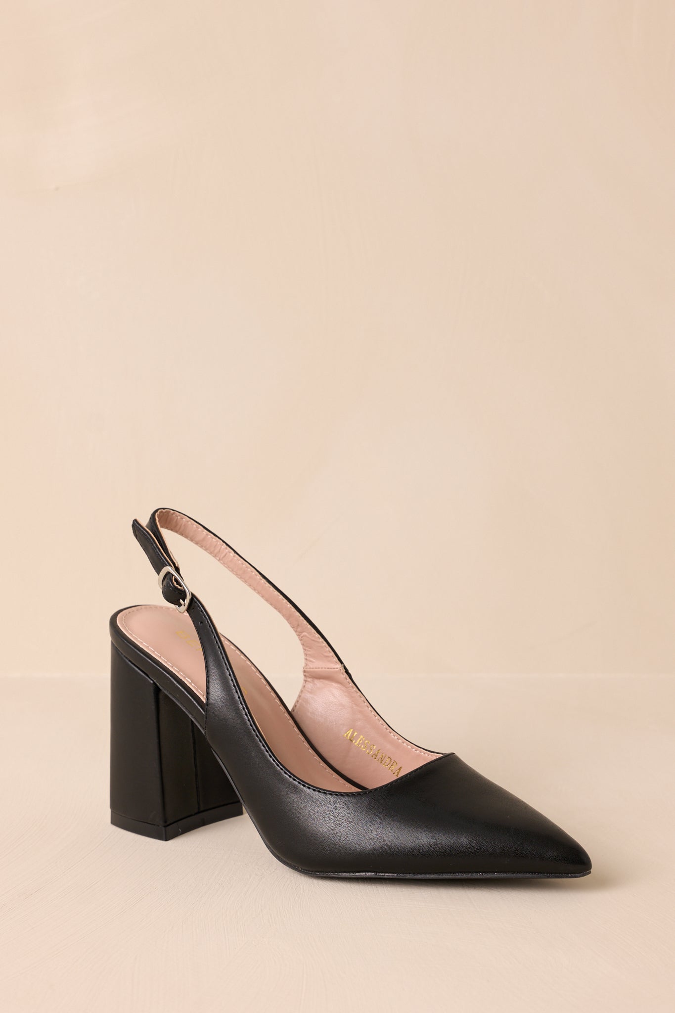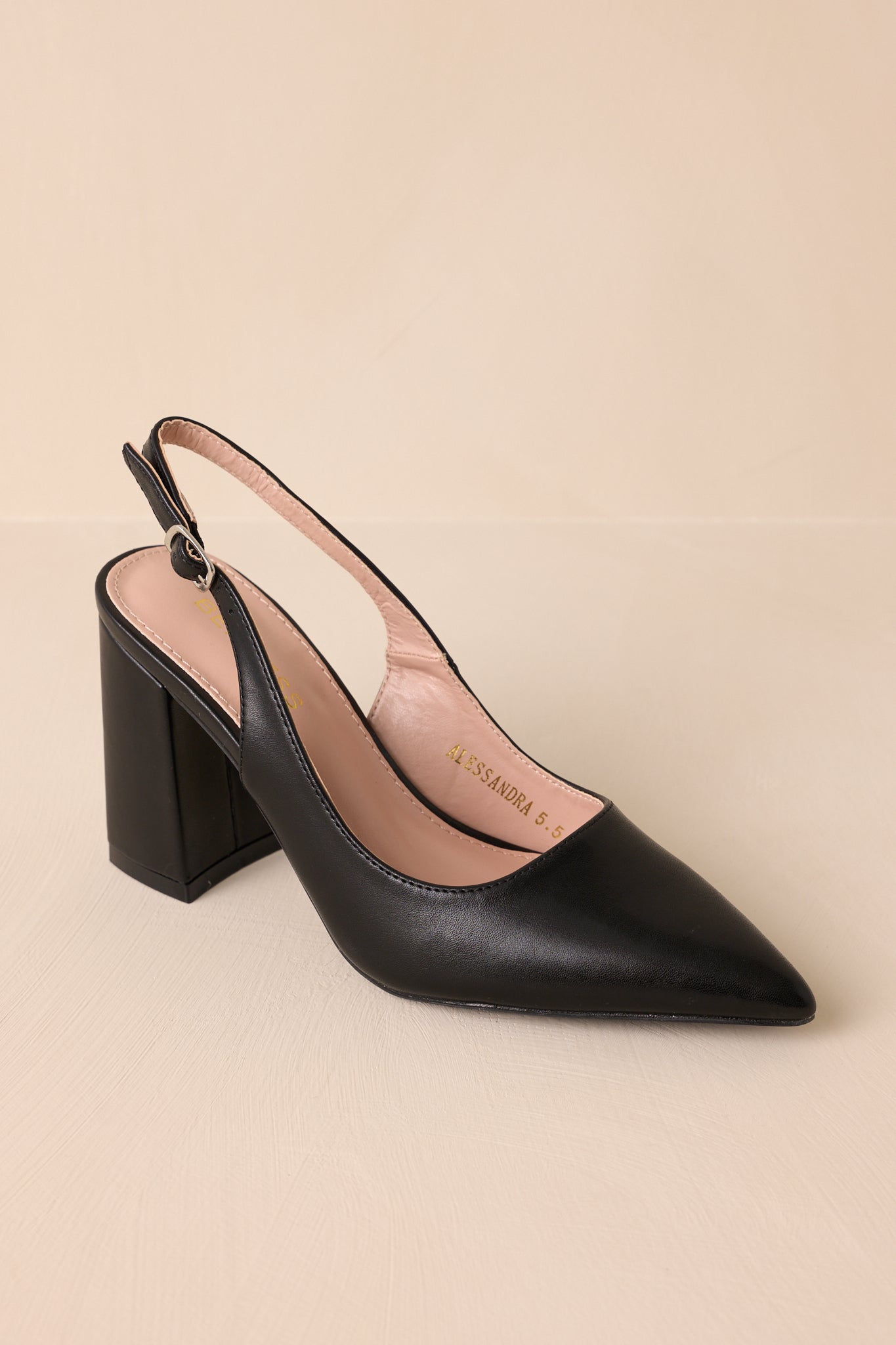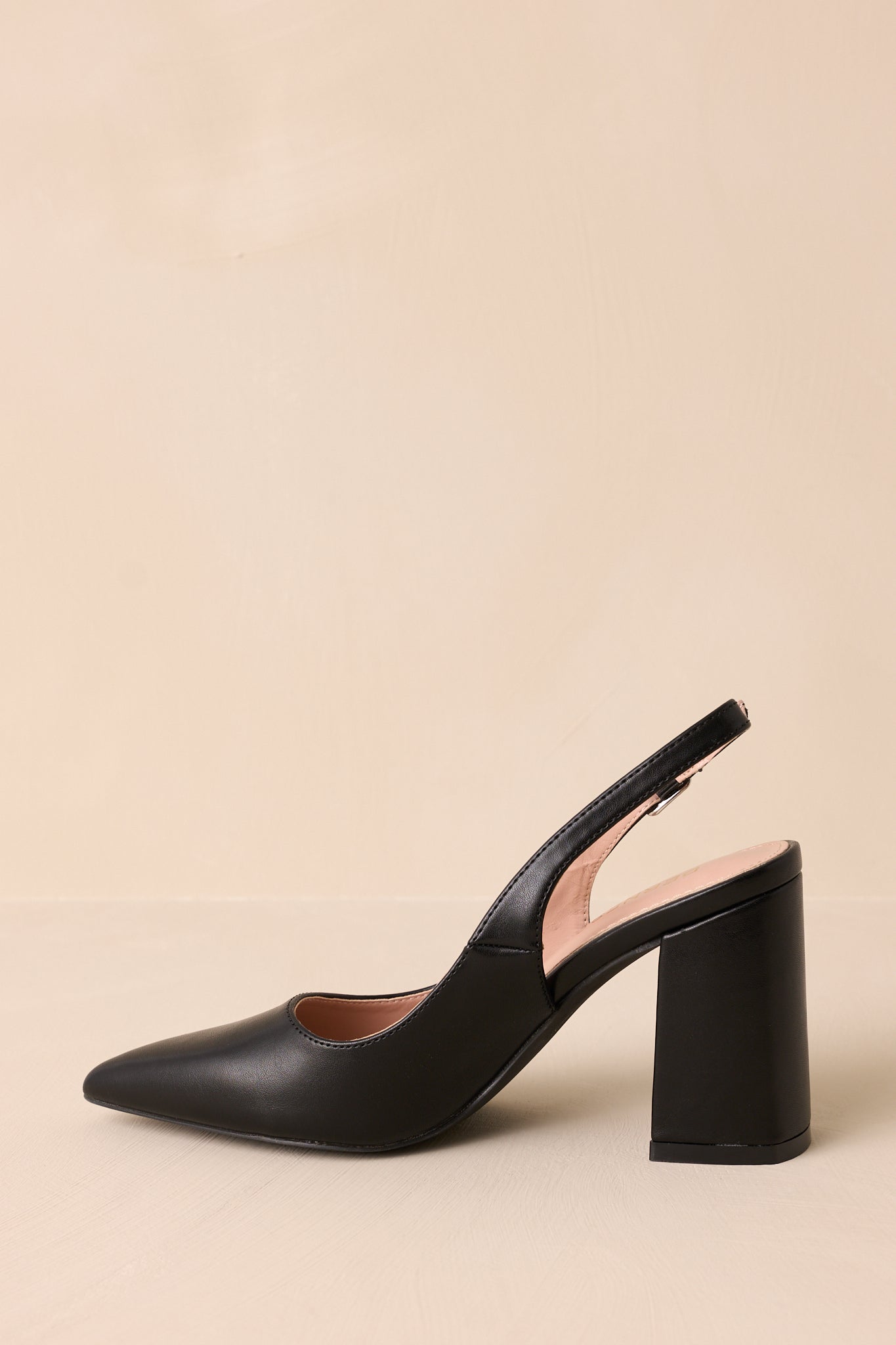 Step up your shoe game with our Elegant Elevation Black Slingback Heels! These stylish heels will elevate any outfit, offering both fashion and function. Their comfortable slingback design and elegant black color make them a must-have for any fashion-forward diva. Walk tall and strut your stuff with these heels on your feet. Perfect for any occasion! These black heels feature a pointed toe, a faux leather material, an adjustable strap around the back of the foot, and a thick block heel.