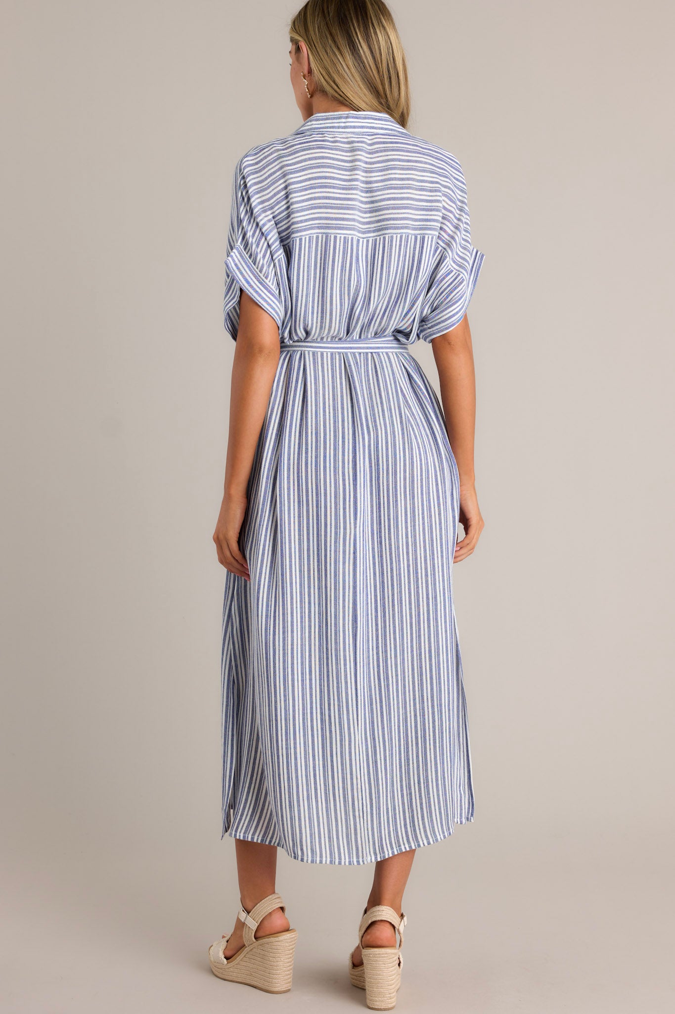 Embrace The Day Blue Stripe Midi Shirt Dress