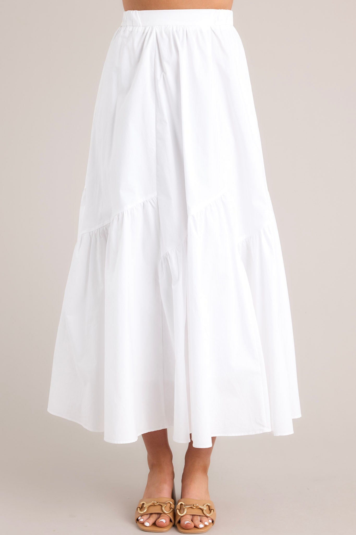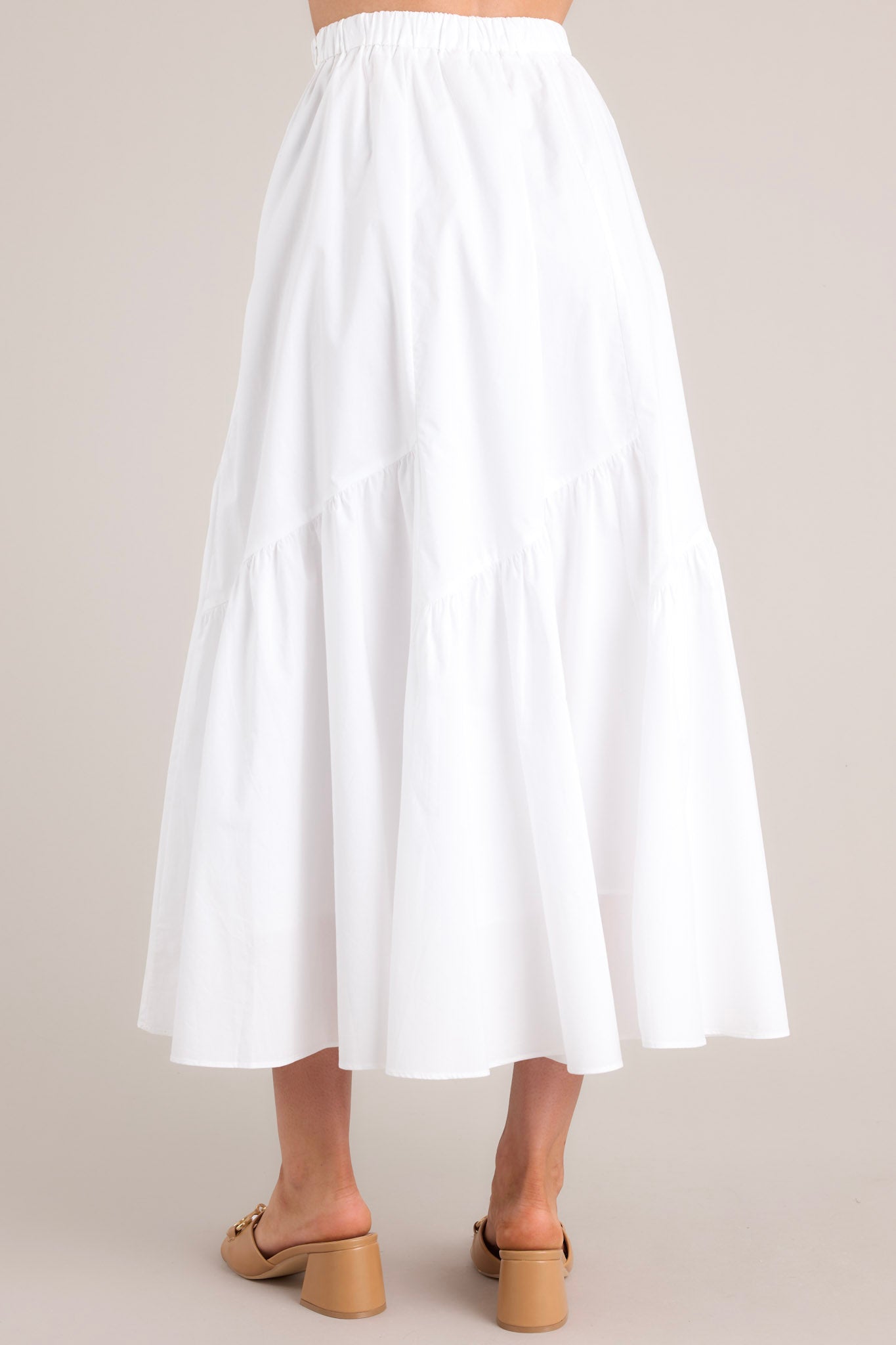 Introducing our Everyday Magic White Midi Skirt - the perfect addition to any wardrobe! This versatile piece features a flattering silhouette and lightweight material for effortless comfort. Whether you dress it up or down, this skirt is sure to bring a touch of magic to any outfit. This skirt features a high waisted design, an elastic waistband, a discrete side zipper, and asymmetrical seams.