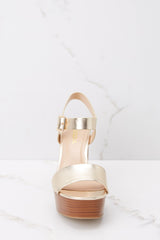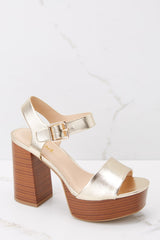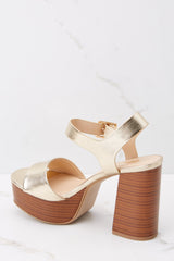 You're looking glamorous, stepping out in these gold heels! I'm so impressed to see how these chunky platform heels show off your Fancy Feet in such a sophisticated way! These gold platform heels feature an adjustable ankle strap, and a wood-like stacked platform heel.