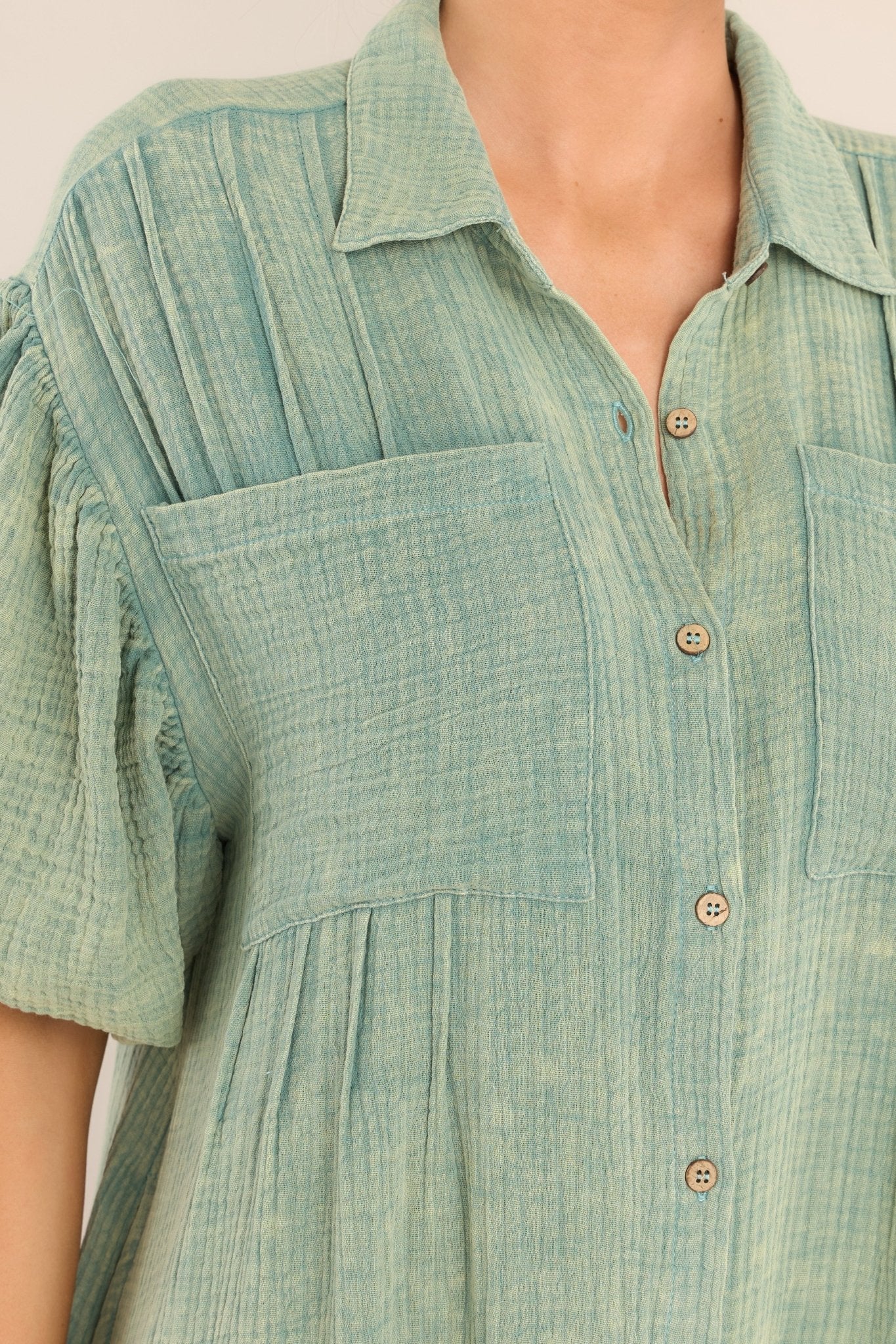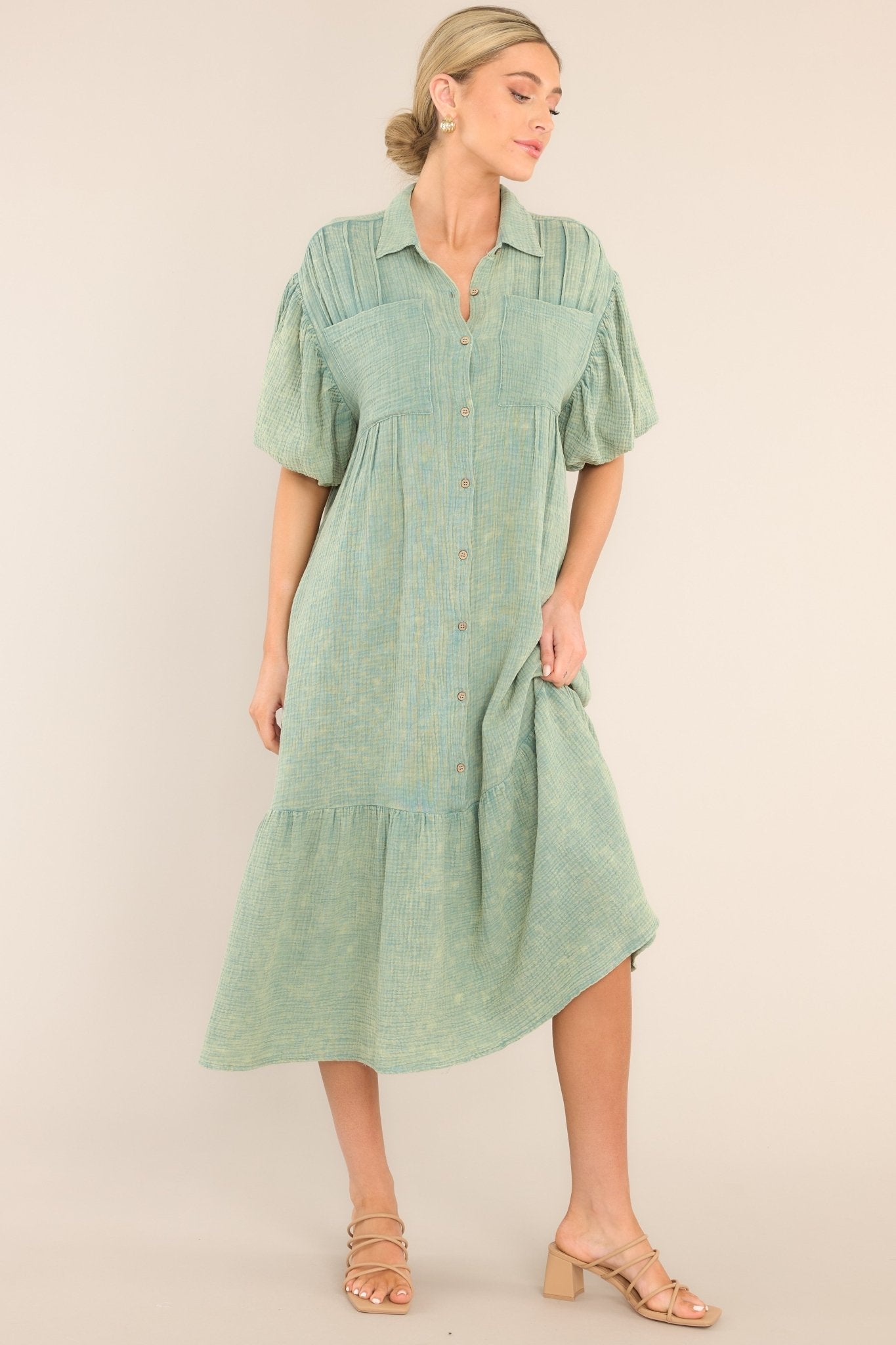 Introducing the Find Balance Sage Gauze Midi Dress - the perfect mix of style and comfort. Made with lightweight and breathable gauze fabric, this dress will keep you cool and looking chic. Find your balance and rock this dress on any occasion.