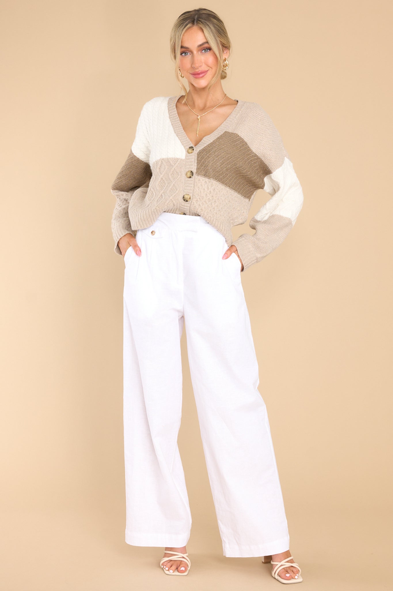 We've got a real treat for you—the Fireside Cutie Taupe Colorblock Cardigan! This cozy little number has you covered with a doubly warm embrace of soft-brushed fabric and colorblocking. Throw on this cutie and you're sure to have a 'fah-bu-lous' fall night! This cardigan features a v-neckline, functional buttons down the front, long sleeves with ribbed cuffs, and a slightly cropped length. Model is wearing a small. • 97% Polyester, 3% Spandex • Hand Wash Cold • Unlined • Imported