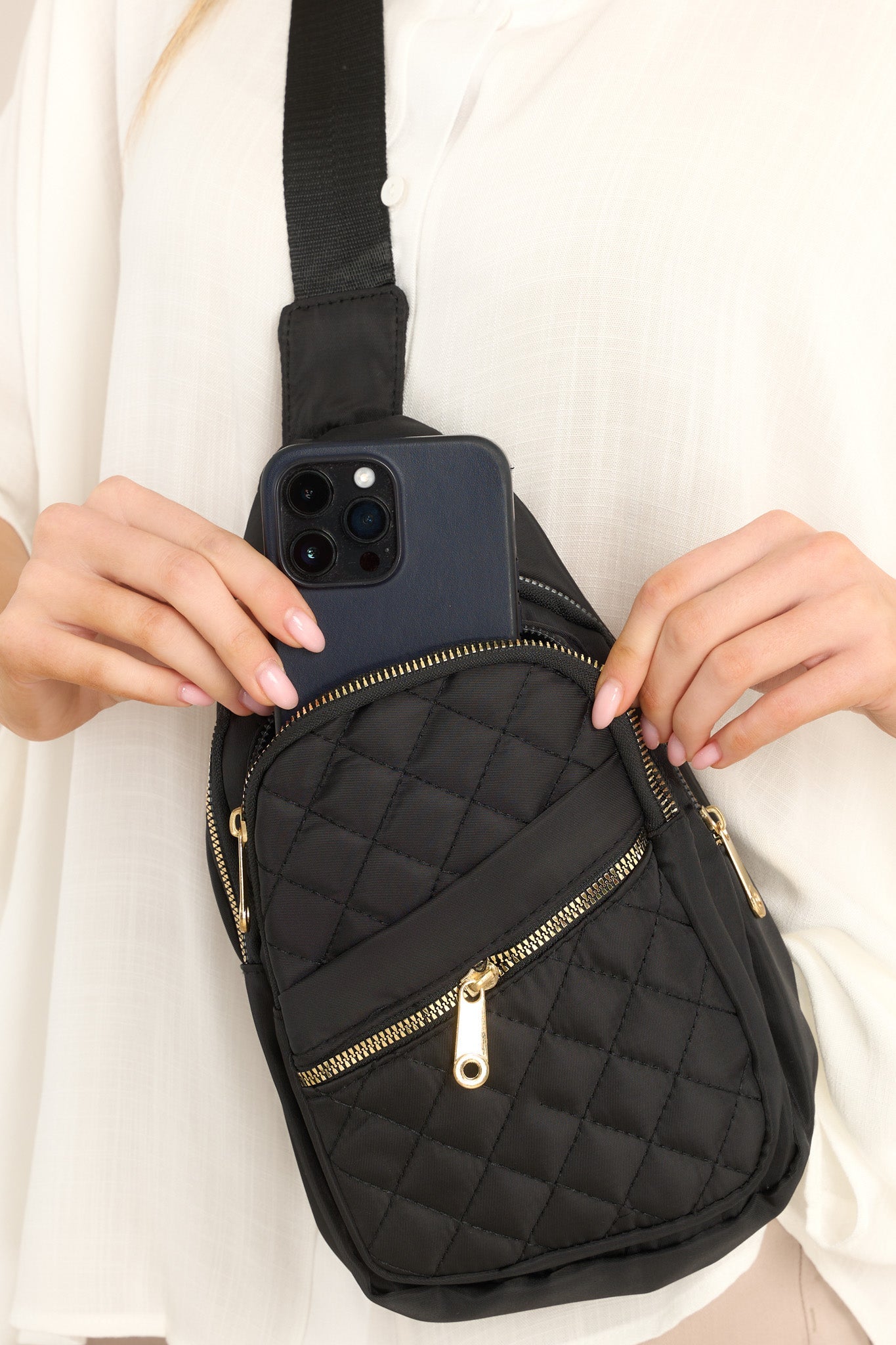 Elevate your style with our First In Line Black Quilted Sling Bag. Crafted from high-quality materials, this bag features a sleek and sophisticated quilted design, perfect for any occasion. With ample space and a comfortable crossbody strap, stay organized and on-the-go while exuding elegance and luxury.