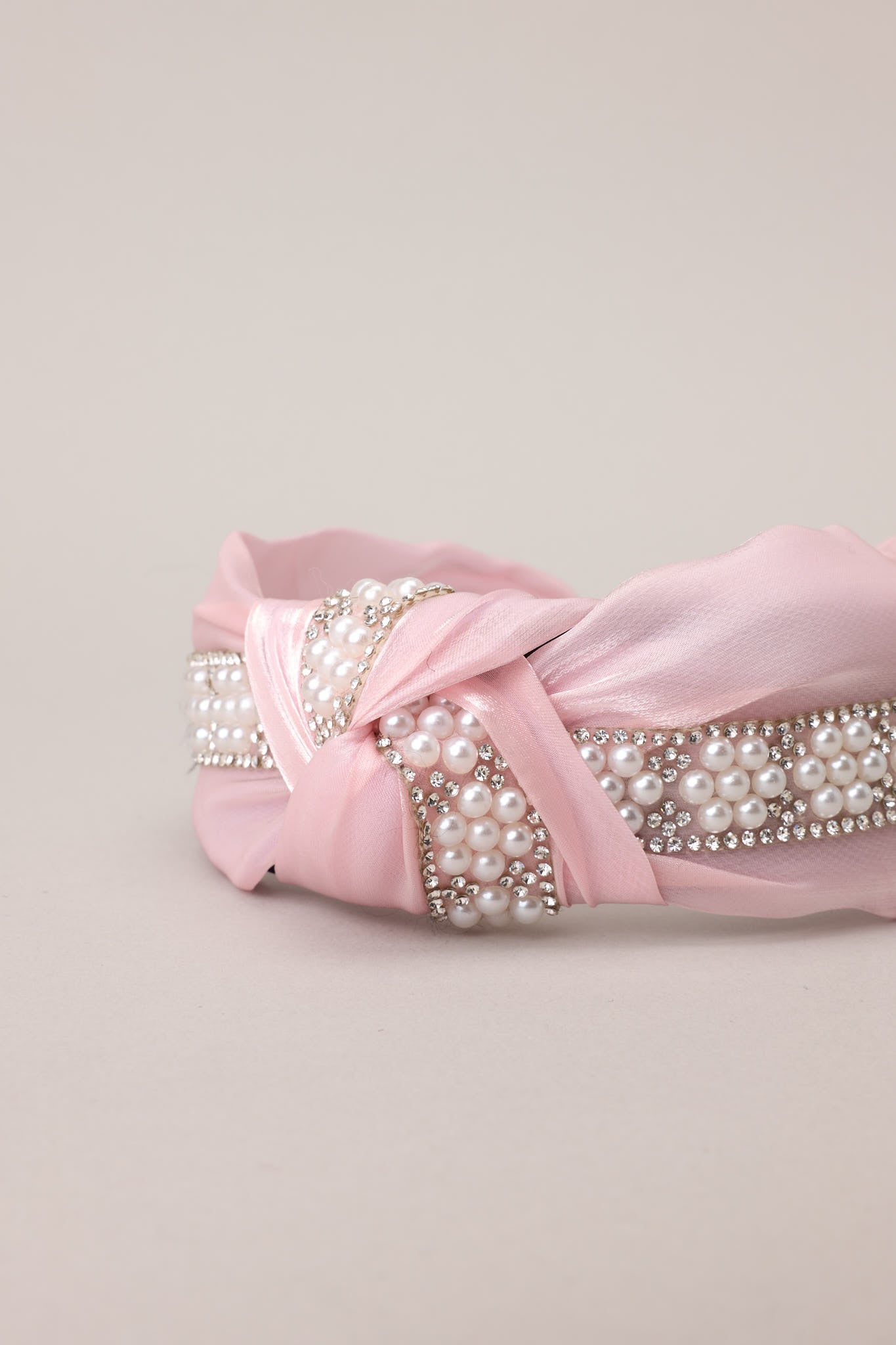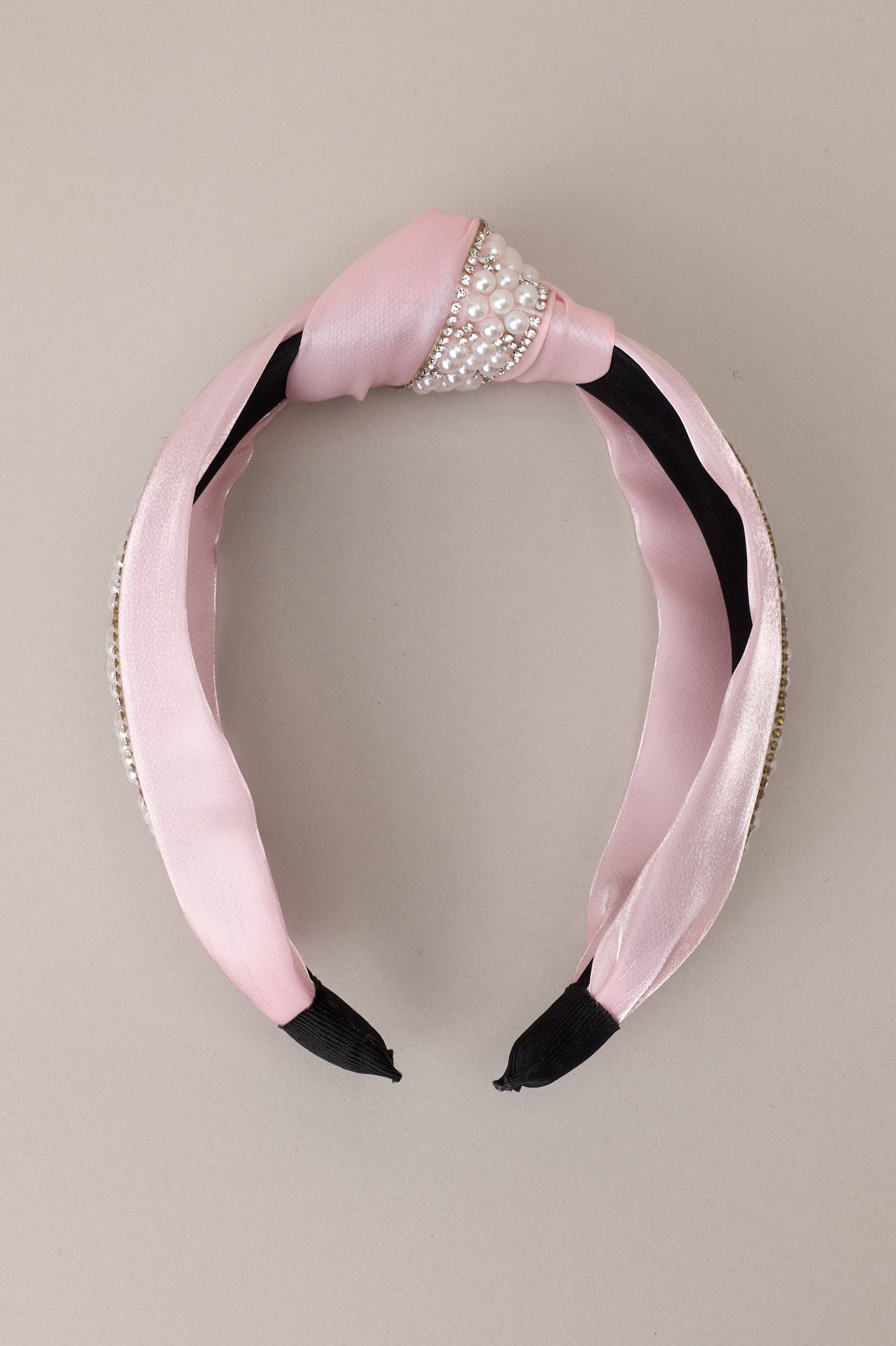 Conquer any bad hair day with the From Struggle To Triumph Light Pink Headband. This pearl headband adds a touch of elegance while holding your locks in place. Say goodbye to hair struggles and hello to stylish triumphs! This headband features rhinestone and faux pearl embellishments, and a knot at the center.