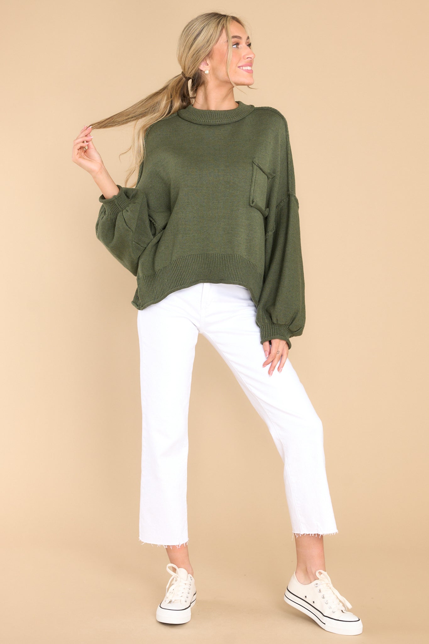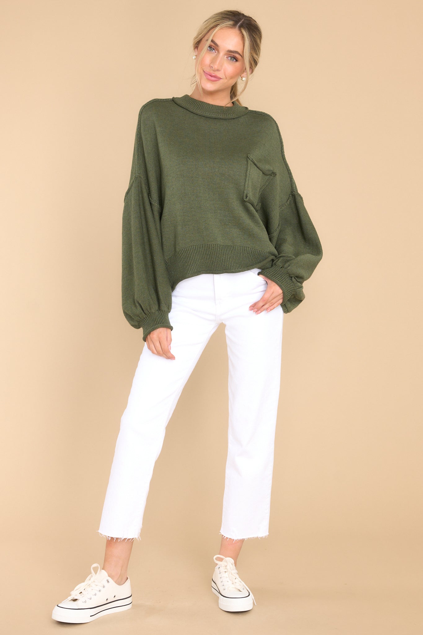 Get ready to make fond memories and a lasting impression at fall festivals with the Fun Days Ahead Green Sweater! Embrace the crisp autumn air in style while you relish the season's festivities - it's a guaranteed crowd favorite! This sweater features a crew neckline, a chest pocket, and bubble sleeves. Model is wearing a size small. • 100% Cotton • Unlined • Imported