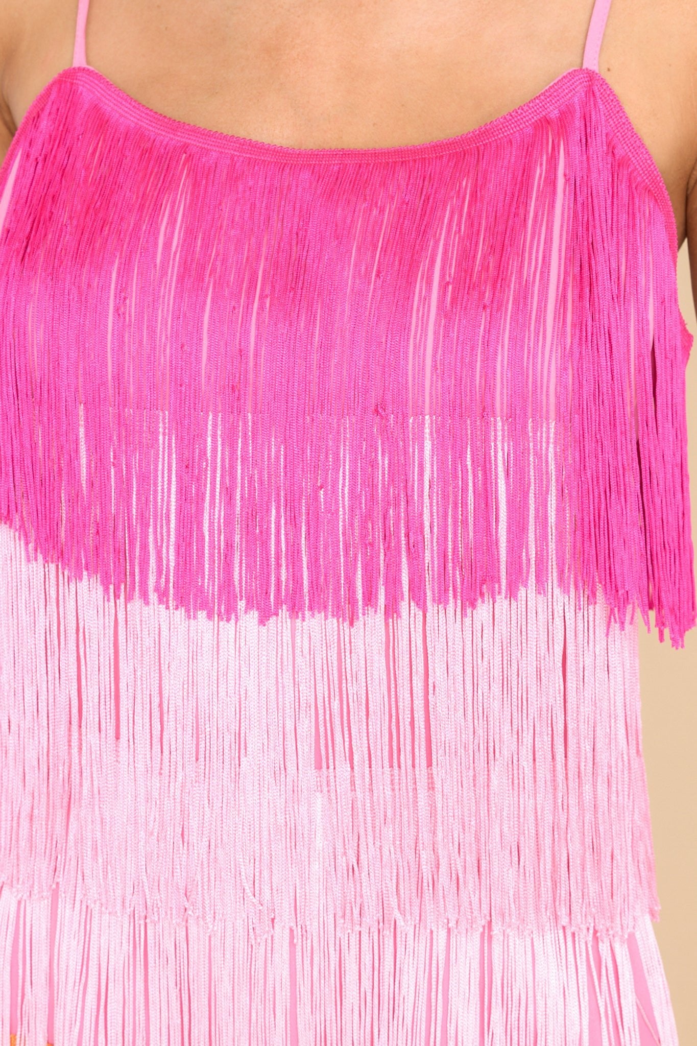 Get ready for a night out in this party-perfect Head To Town Pink Multi Tassel Dress! Flirty and fun, it's sure to be the life of the dancefloor with its daring design and multi-colored, swaying tassels. So go ahead and show 'em who's boss of the club! This dress features a round neckline, adjustable straps, a side zipper, and fringe detailing throughout with lots of movement. Model is wearing a size small. • 97% Polyester, 3% Spandex • Hand Wash Cold • Imported
