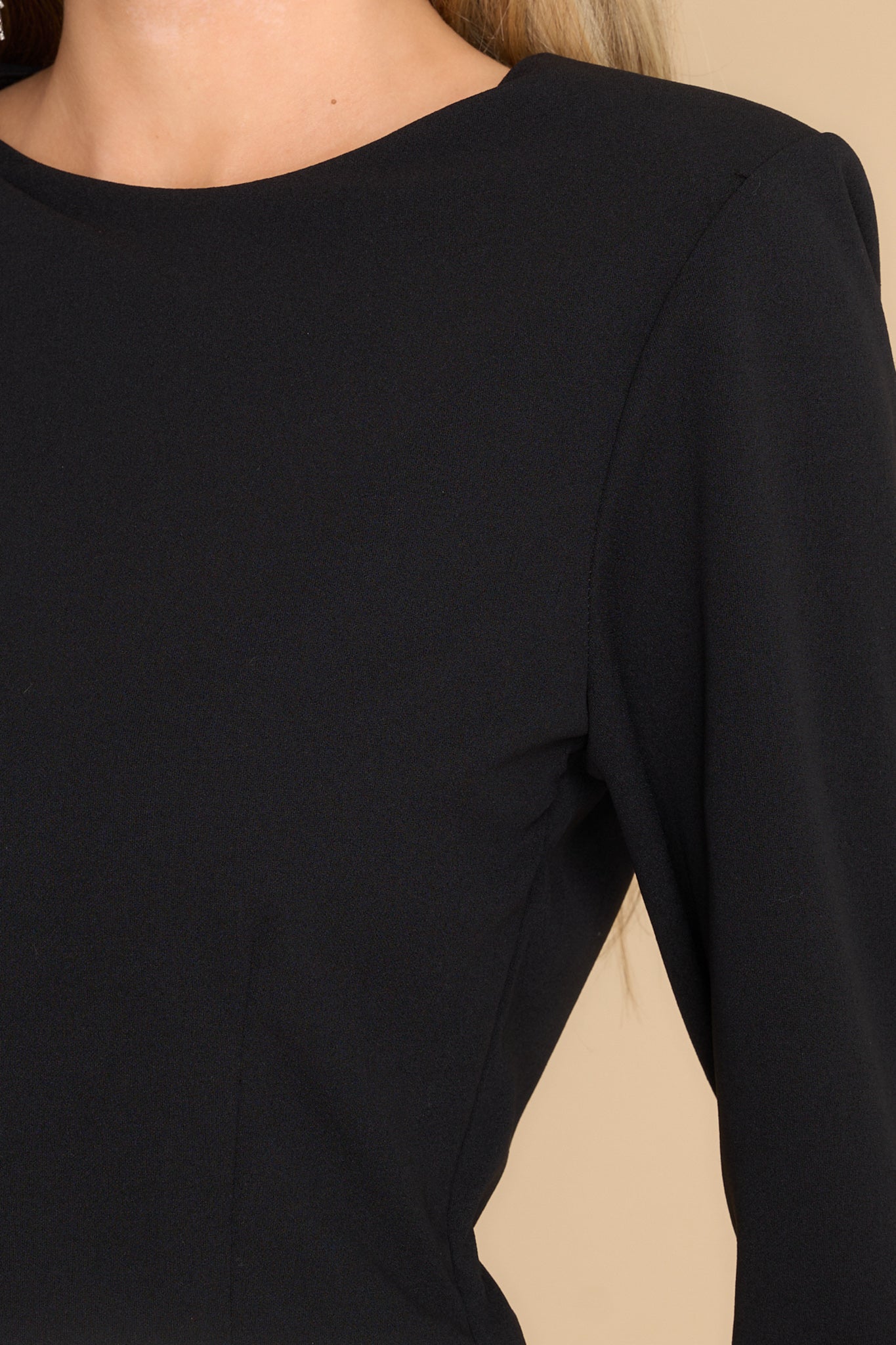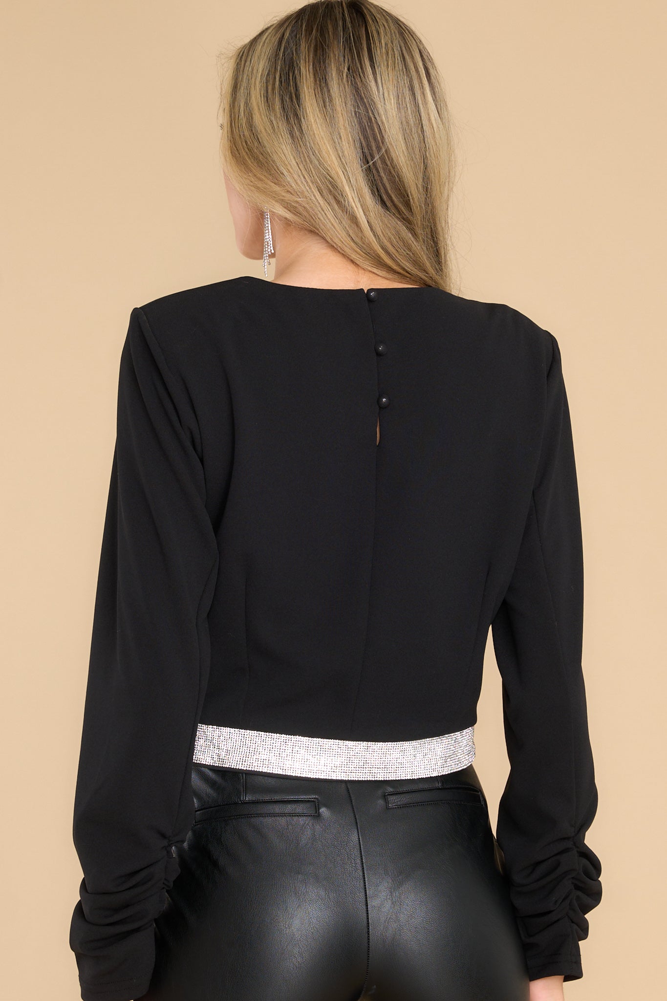 Ah, the classic black top with a twist... or should I say, a twist of confusion. Is it trying to be sleek and sophisticated or did it just give up halfway through and slap on a sparkly belt? The sleeves look like they're suffering from an identity crisis—one part ruched, one part straight, all parts questionable. And that glittery band at the bottom? It looks like it was borrowed from a discarded disco outfit. This top is the fashion equivalent of a mullet: business on top, party at the waist, and none of it makes sense.