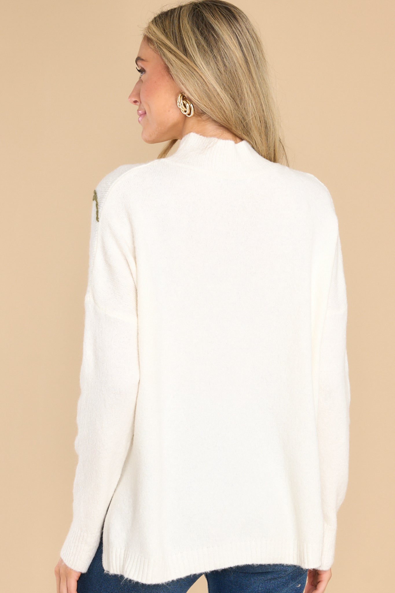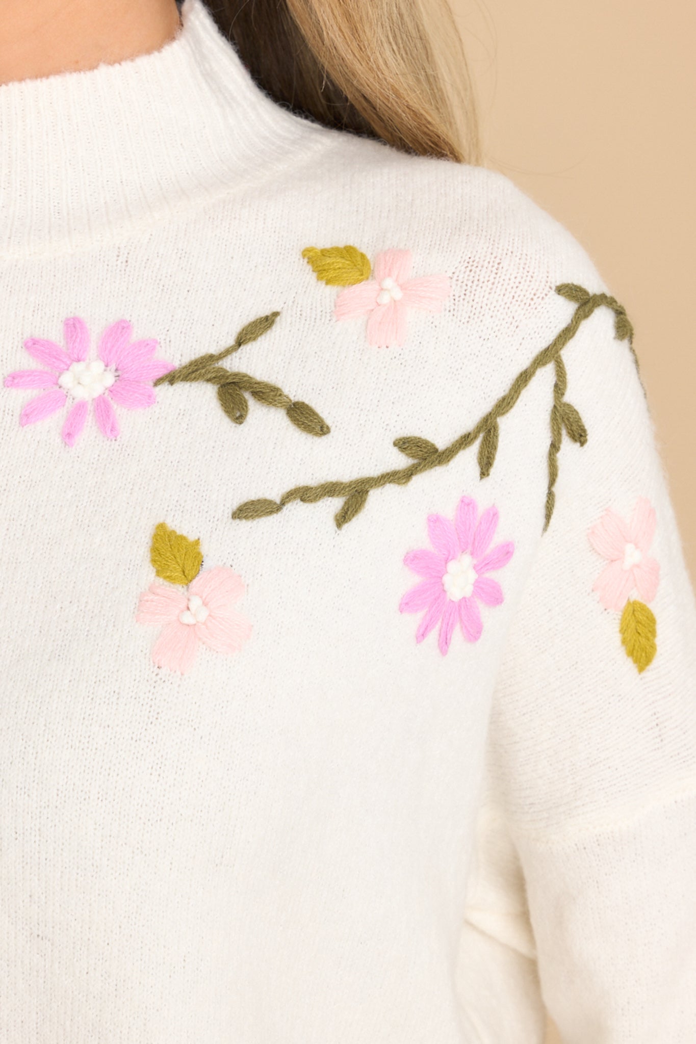 Ready to bloom this season? Our I Remember Ivory Floral Print Sweater is an essential for your wardrobe. This statement sweater will have you feeling like a queen with its exquisite ivory floral print, perfect for adding a touch of glam to any outfit. Look amazing, feel amazing in this floral print sweater! This sweater features a turtle-neck, a ribbed hem and cuffs, and floral embroidered detailing. Model is wearing a size small. • 45% Acrylic, 37% Polyester, 15% Nylon, 3% Spandex • Dry Clean Only • Unlined • Imported