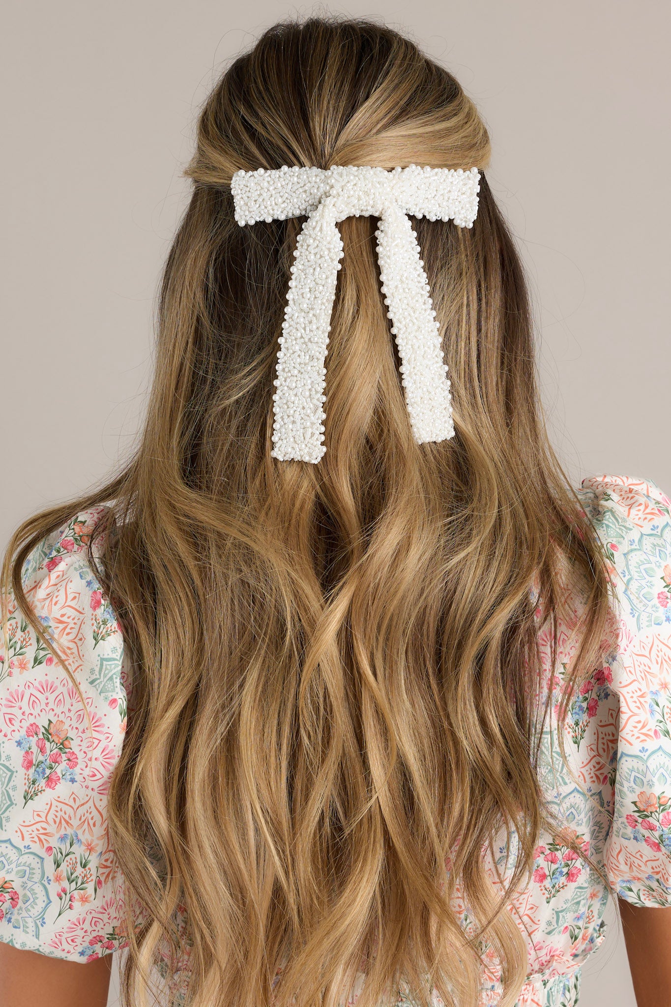 Imperial Grace Ivory Pearl Beaded Bow Clip