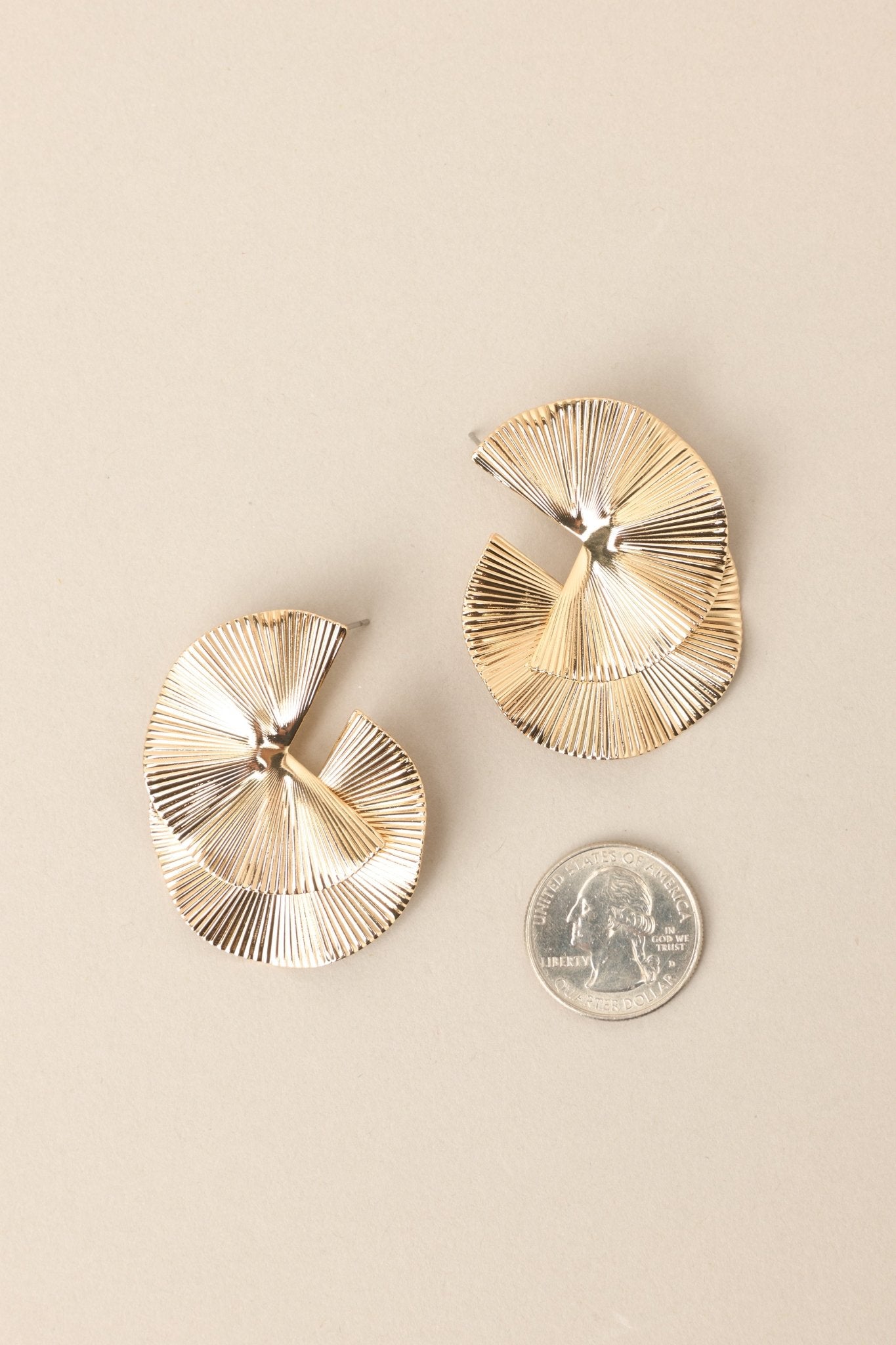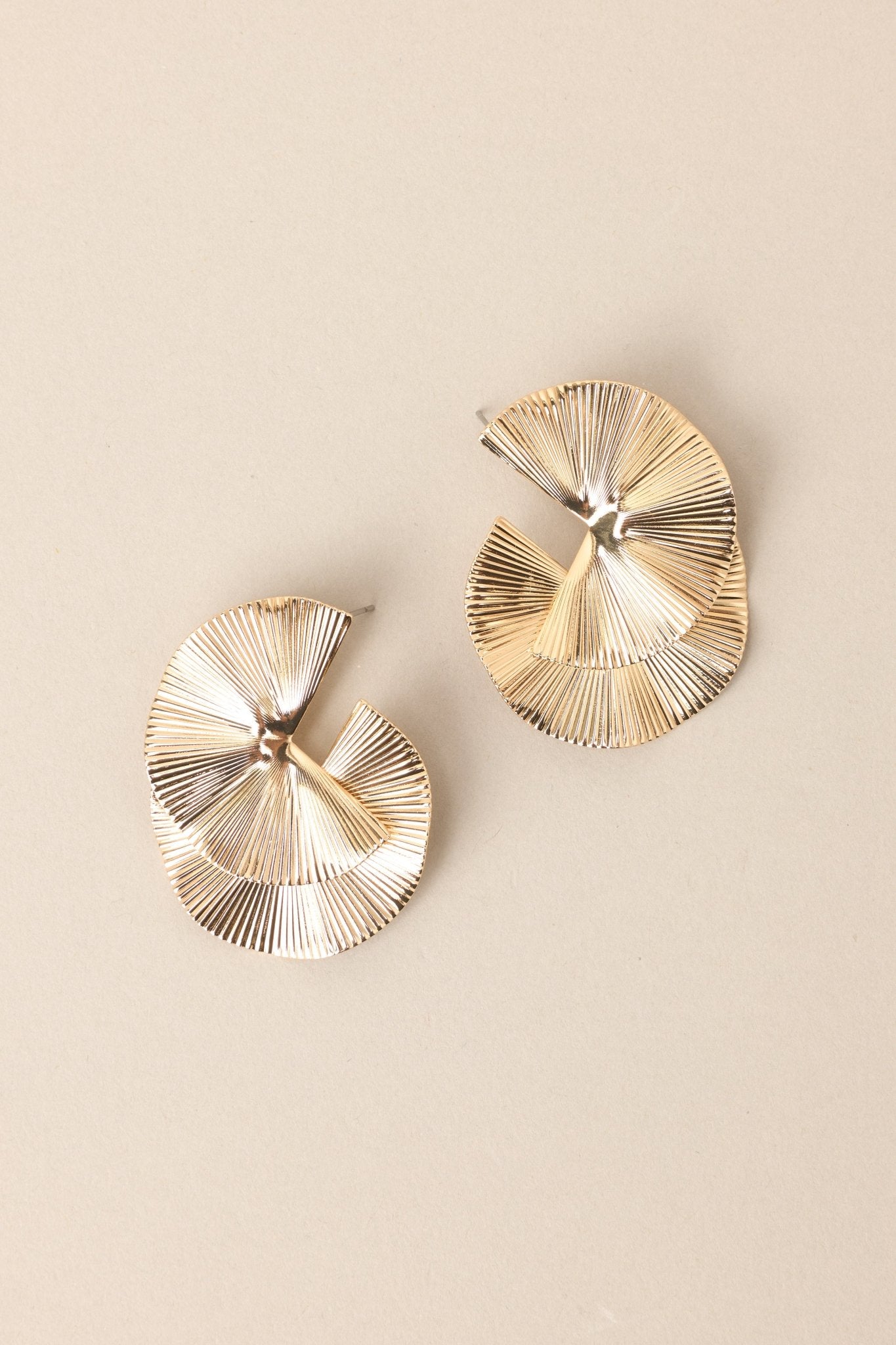 These earrings feature gold hardware, a textured abstract design, and secure post backings.