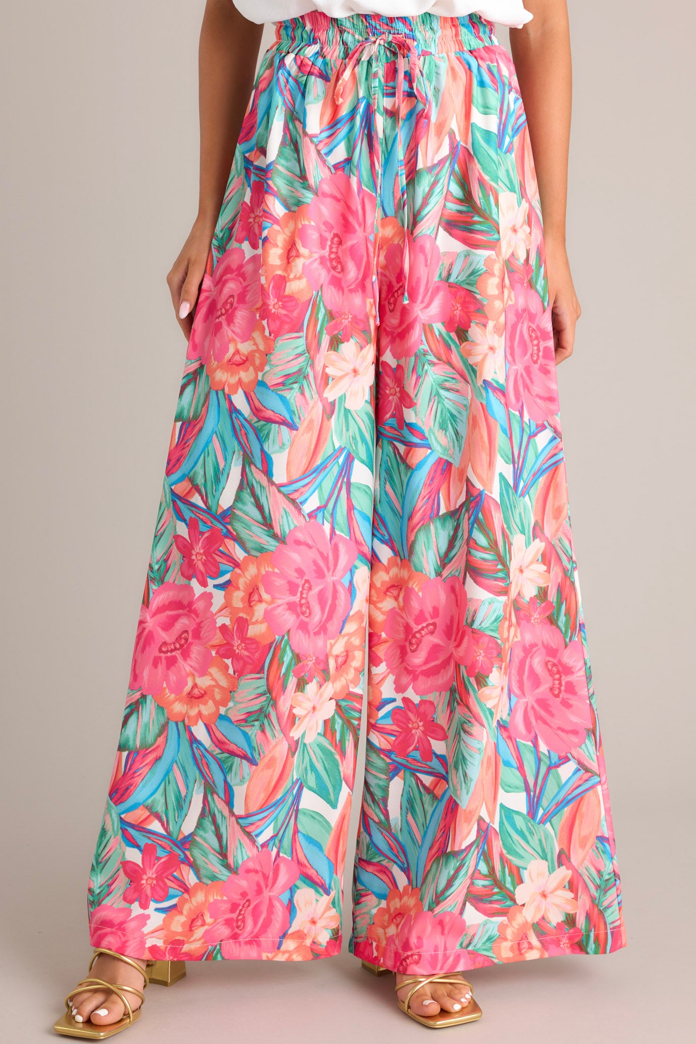 Island Breeze Hot Pink Multi Floral Wide Leg Pants