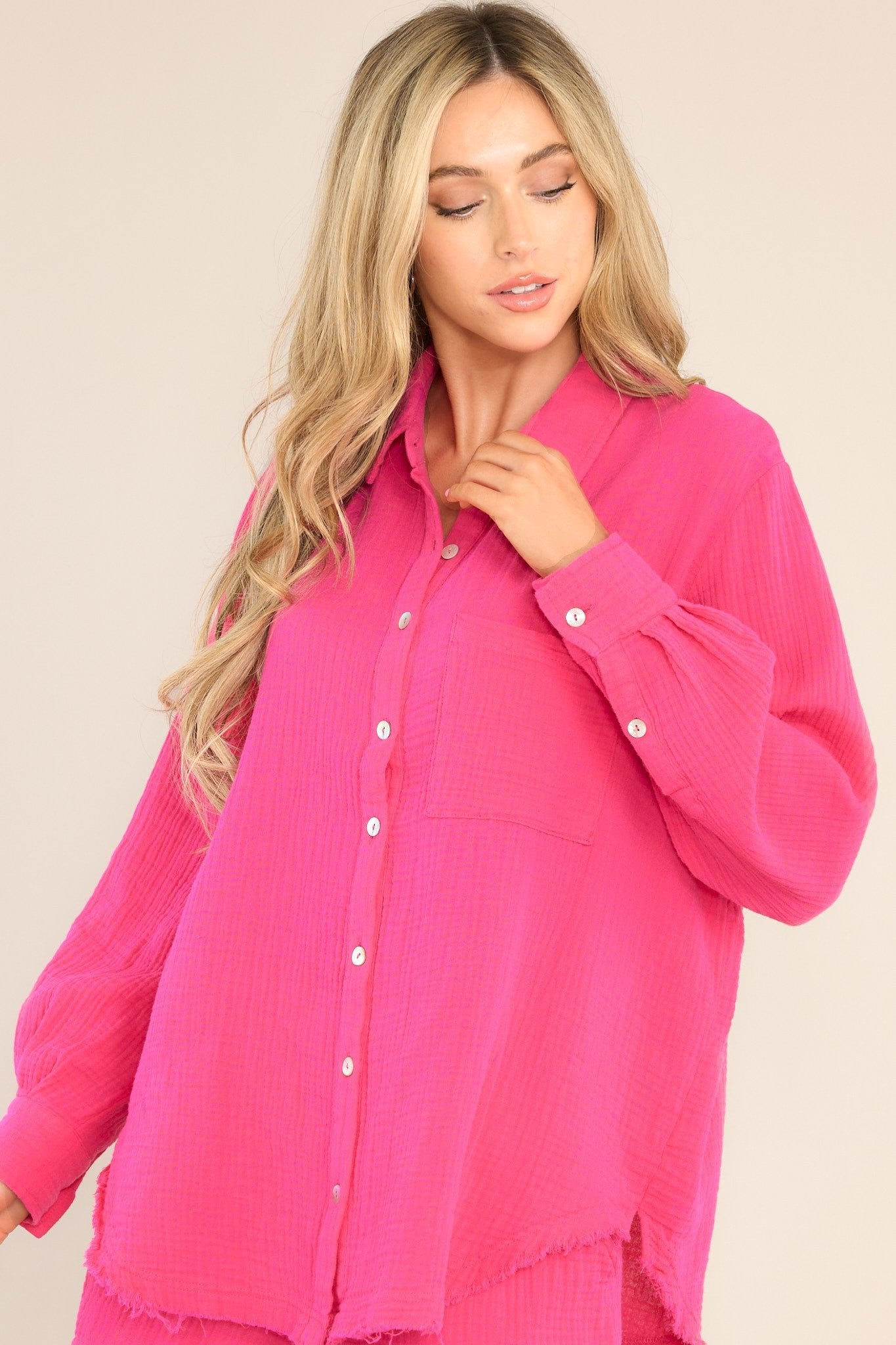 Island Hopping Hot Pink Gauze Button Front Top