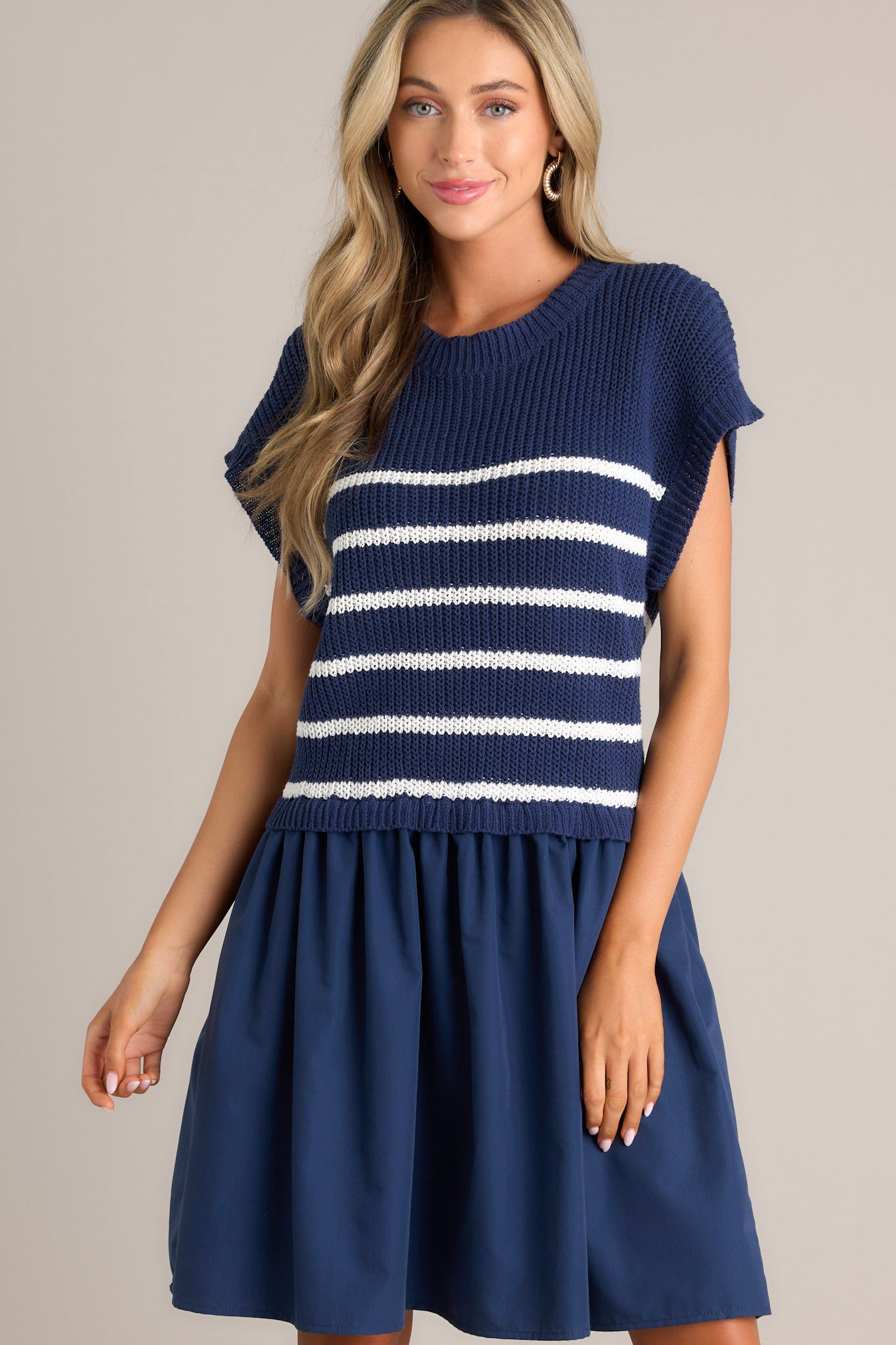 Journey Continues Navy & White Stripe Sweater Mini Dress