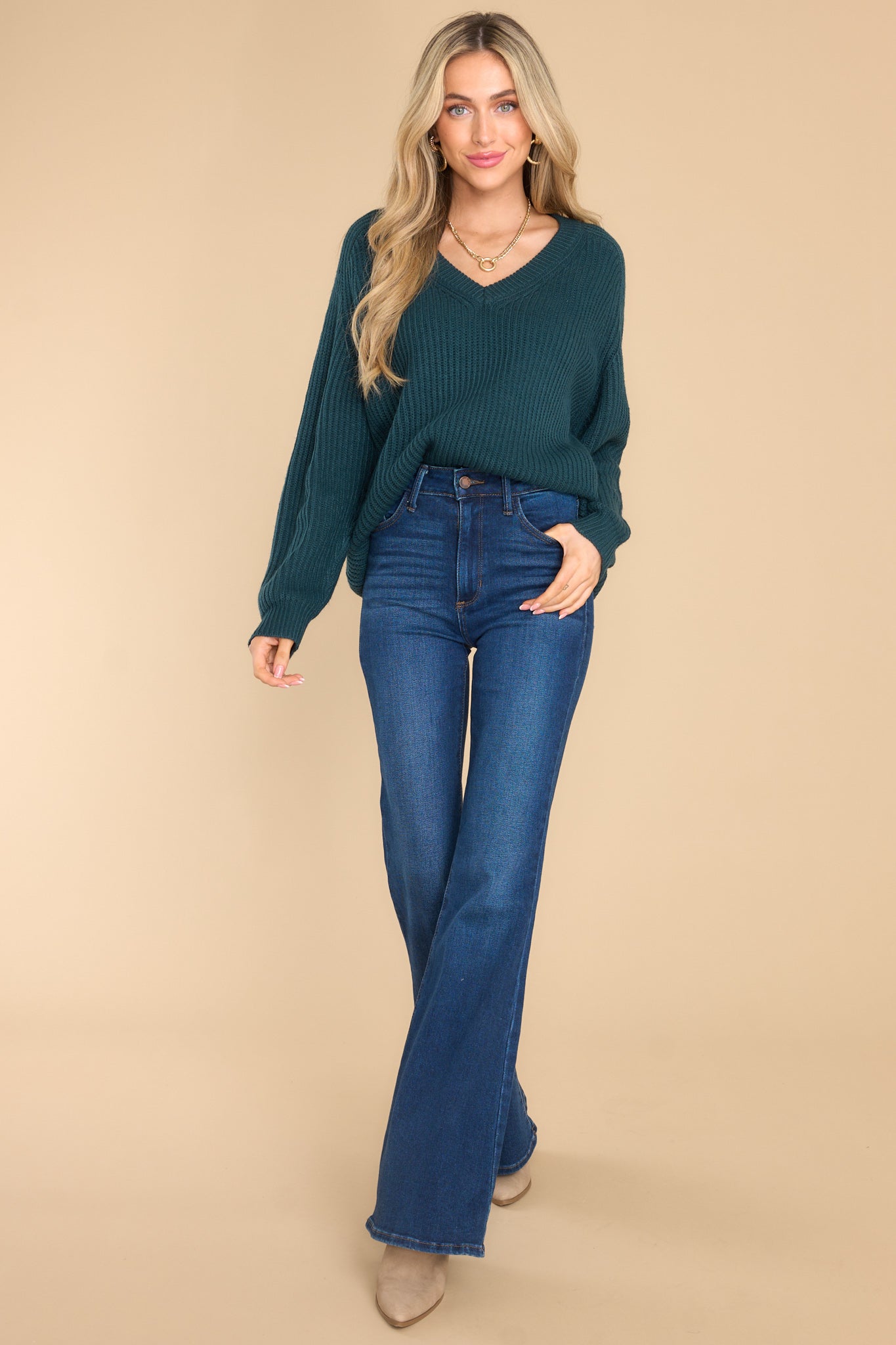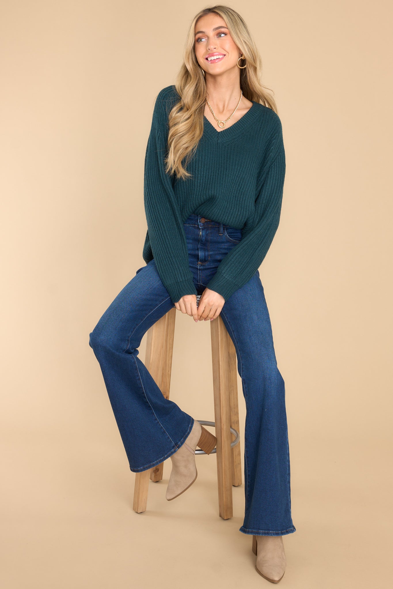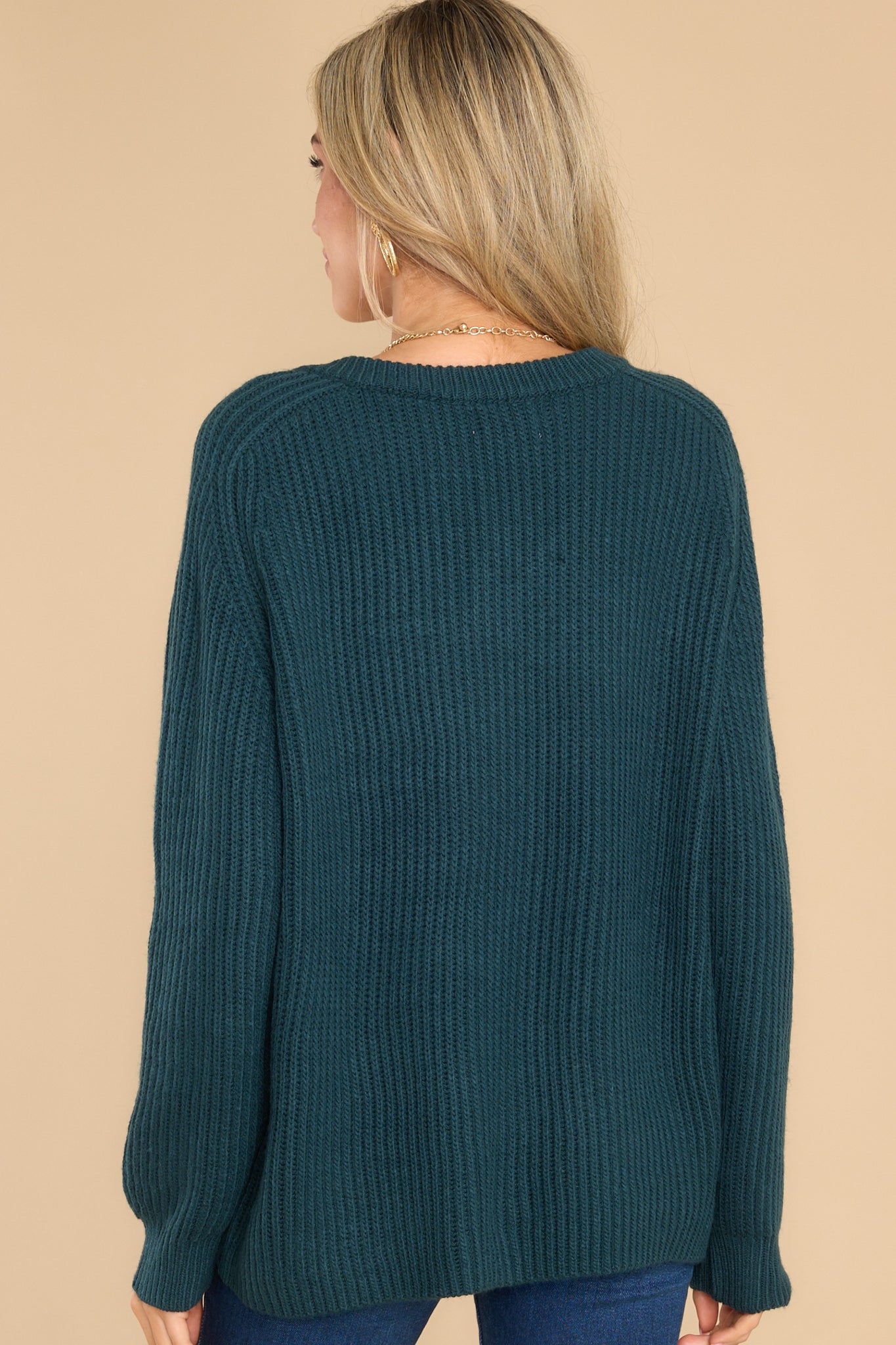 Feel extra snuggly in this Just Makes Sense Dark Teal Sweater! Soft and cozy, it's the perfect piece of clothing for chill days. This sweater features a v-neckline, long sleeves with ribbed cuffs, and a wide, oversized fit. Model is wearing a Small/Medium. • 100% Acrylic • Hand Wash Cold • Unlined • Imported