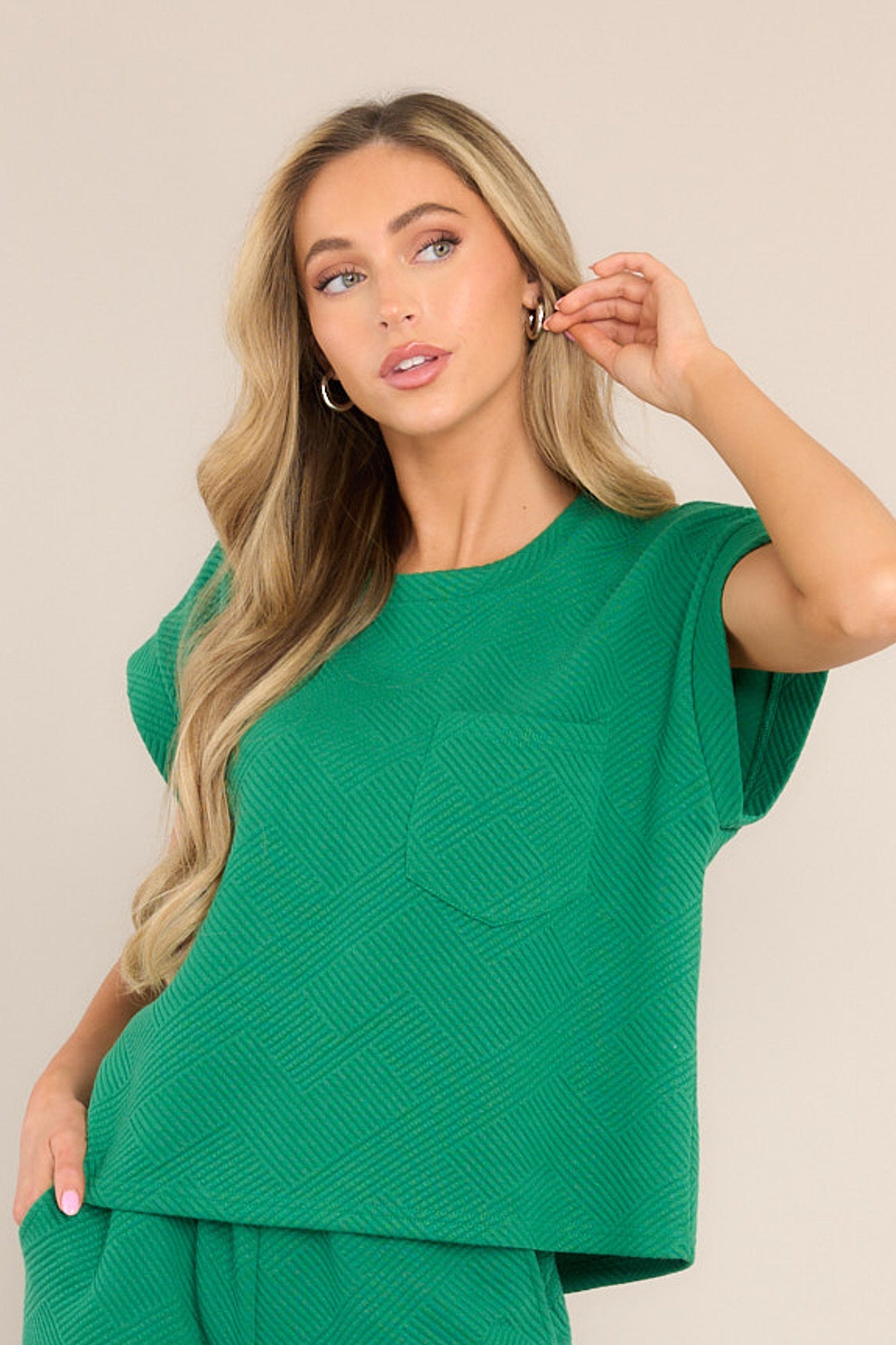 Keep It Creative Kelly Green Textured Short Sleeve Top