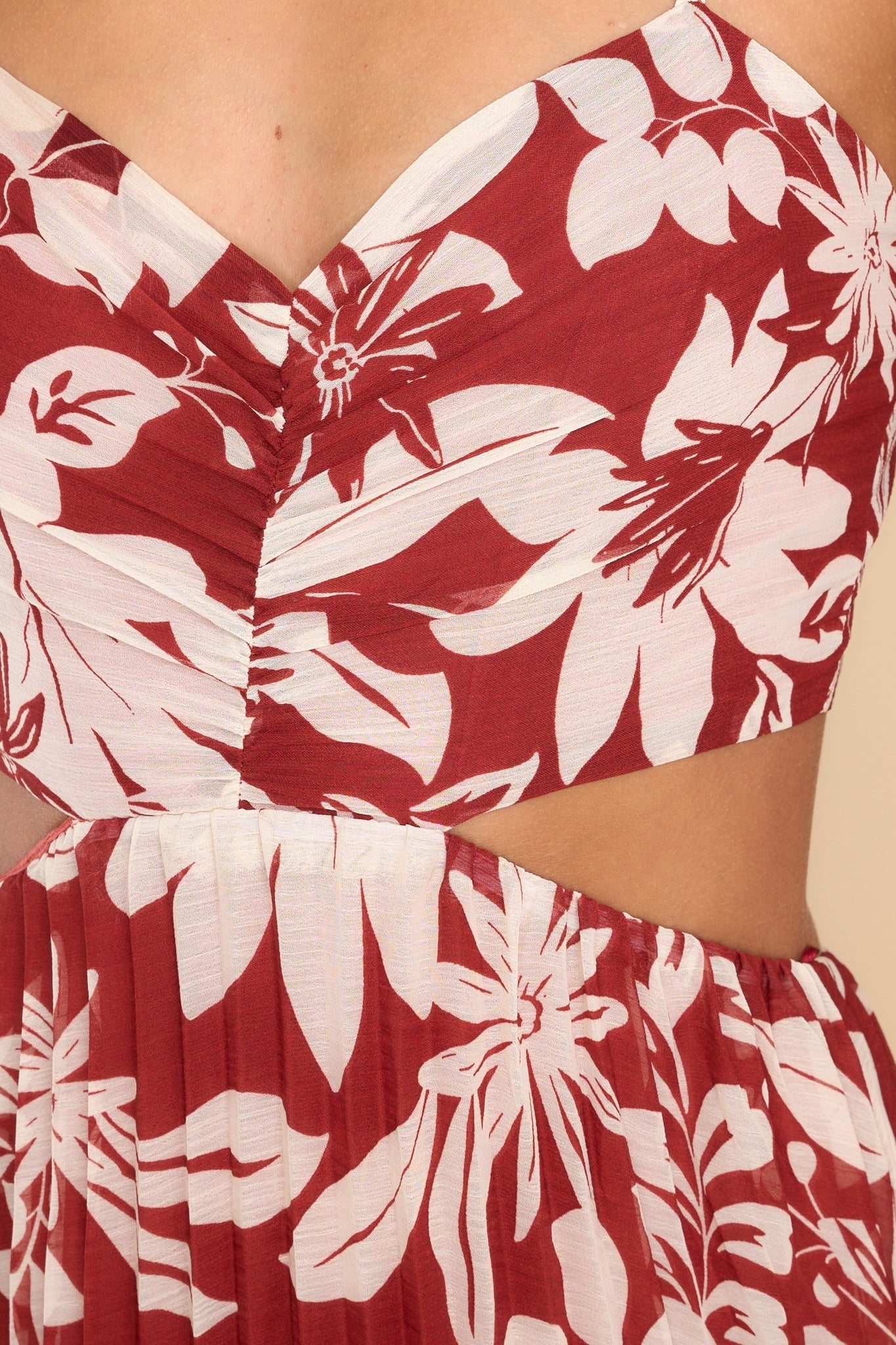 Be the queen of the night out with your girls in this beautiful Keep Your Promises Multi Floral Maxi Dress! This deliciously dreamy number has the style and sophistication you need to really show off your gorgeous self. So don't worry about breaking your promise to be the center of attention - this dress says it all! This dress features a sweetheart neckline, adjustable spaghetti straps, side cutouts at the waist and around the back, two zippers up the back above and below the waist, and a flowy, pleated skirt. • 100% Polyester • Hand Wash Cold • Lined 100% Polyester • Imported