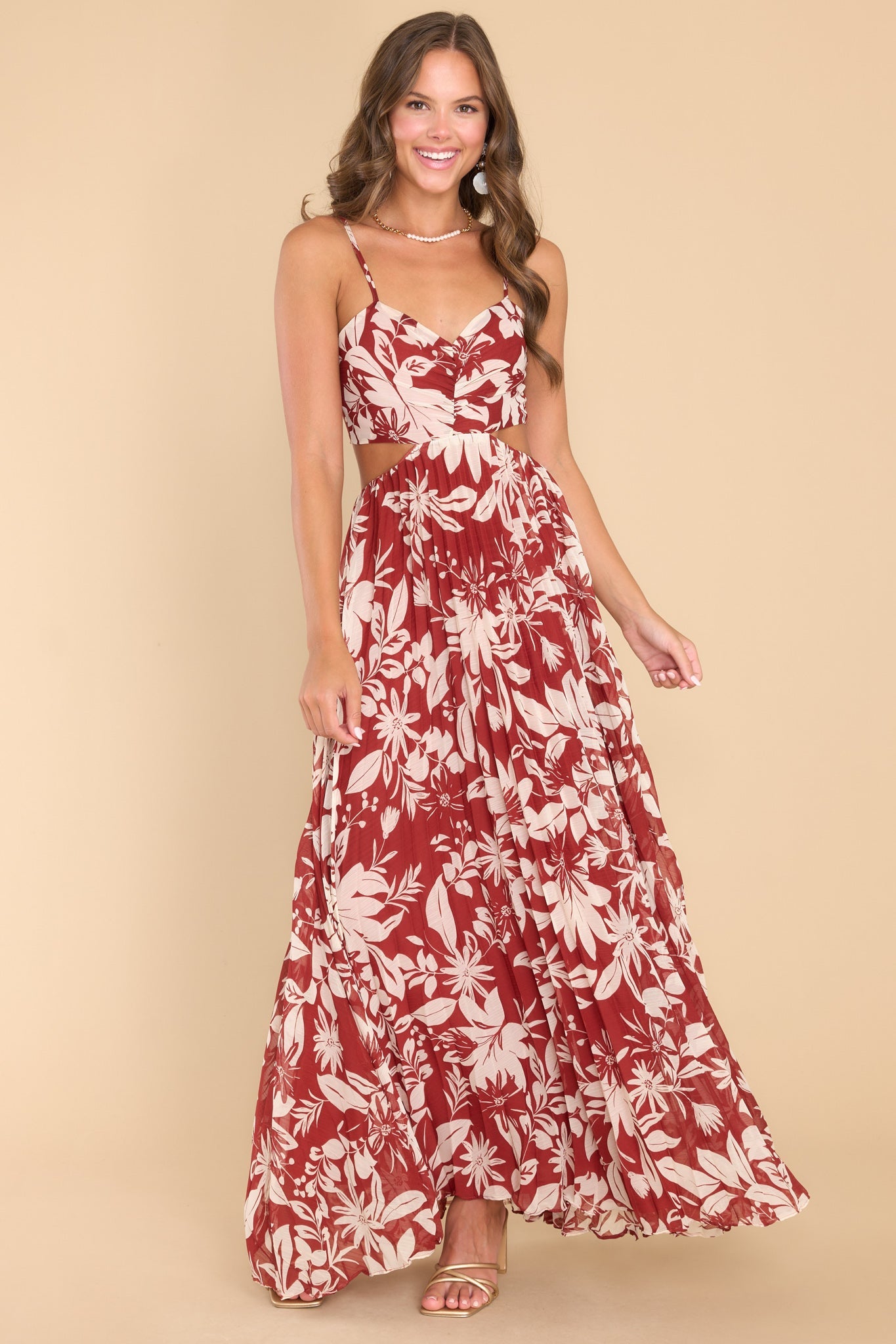 Keep Your Promises Brick Ivory Floral Maxi Dress