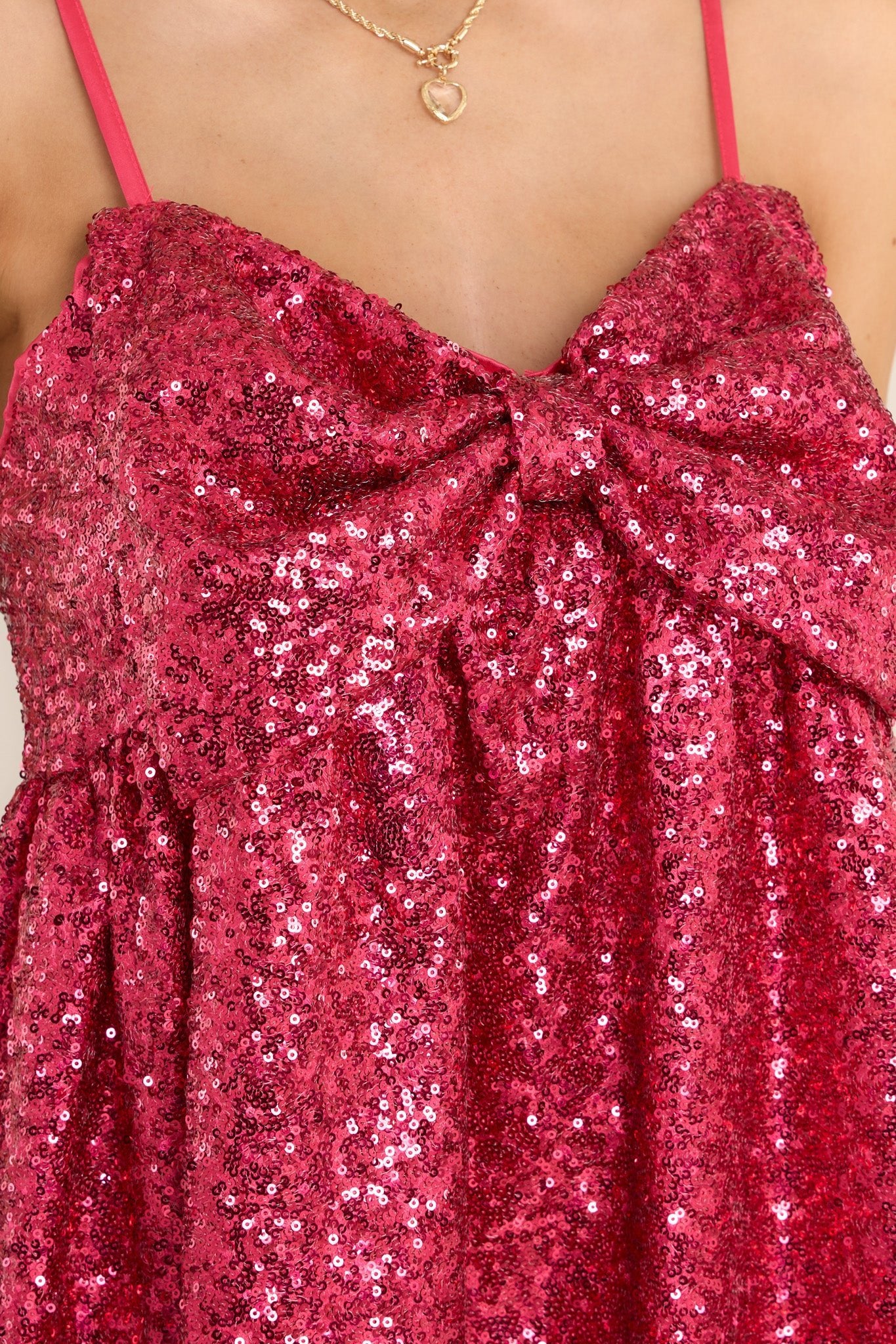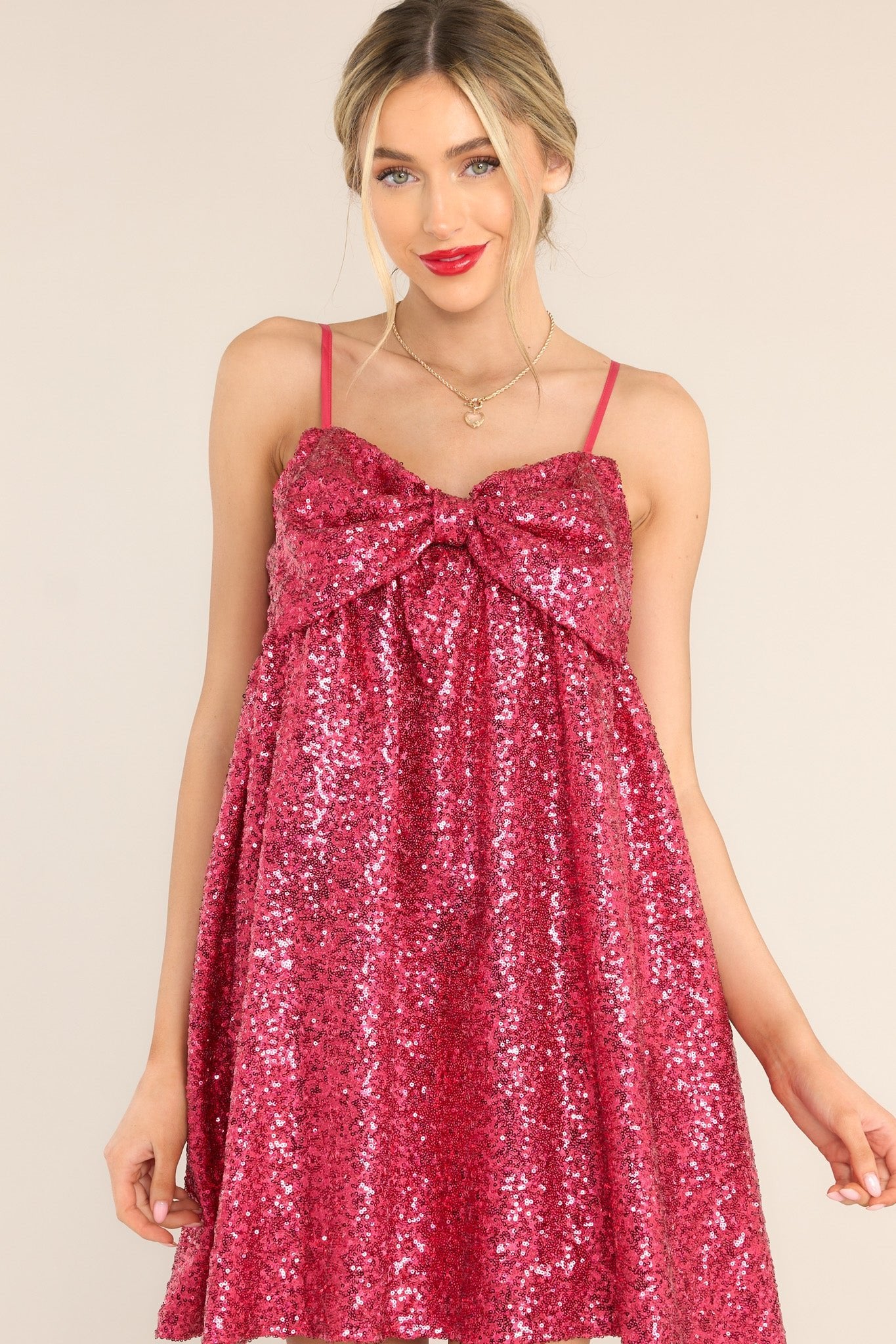 This dress looks like a Christmas present gone horribly wrong, with that oversized bow and the explosion of pink sequins. The shapeless design gives it all the elegance of a gift wrap reject. If "festive fashion fail" was your goal, then you’ve wrapped it up perfectly.
