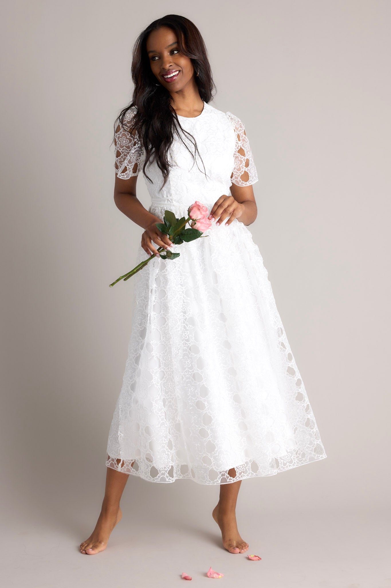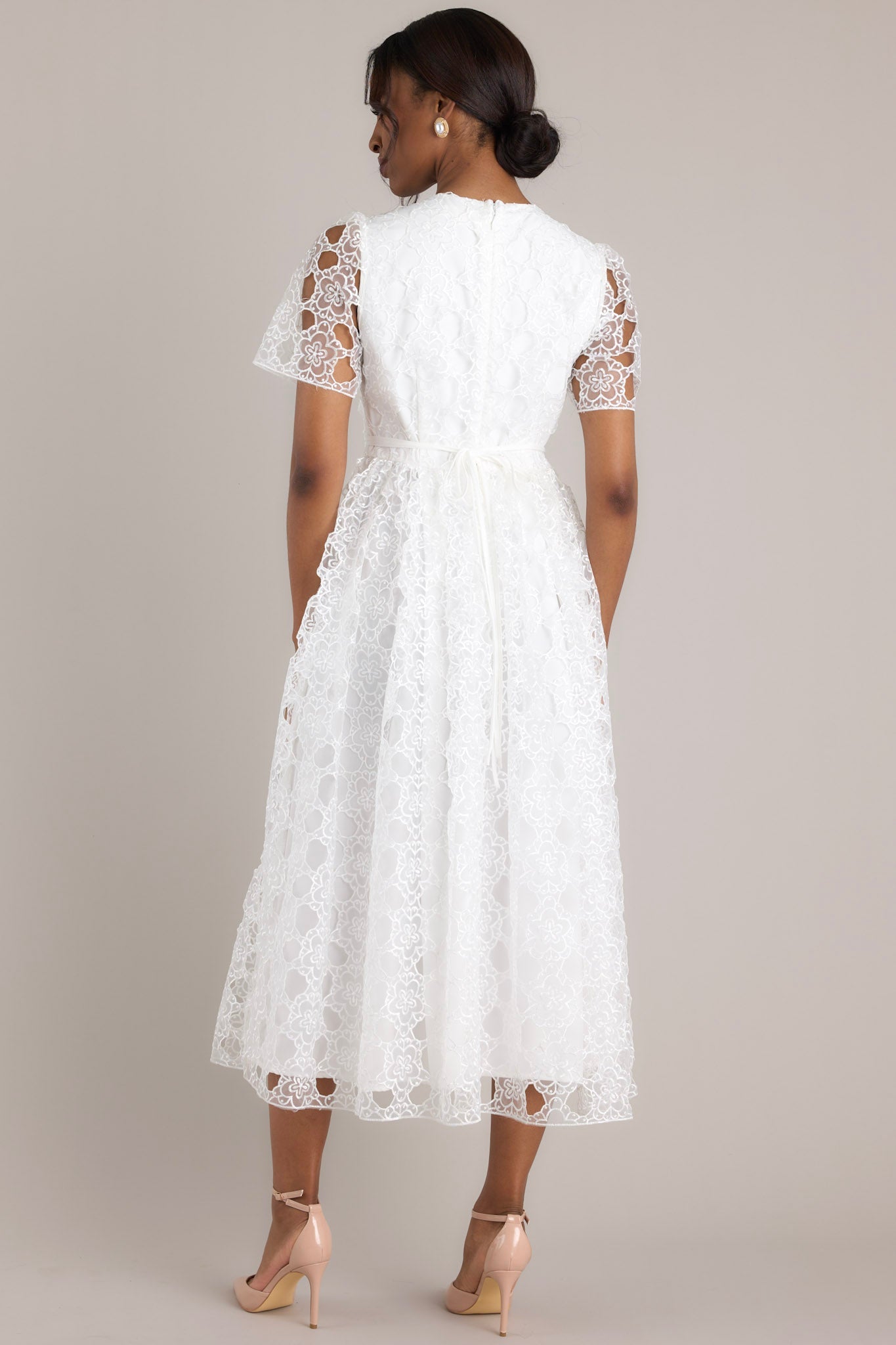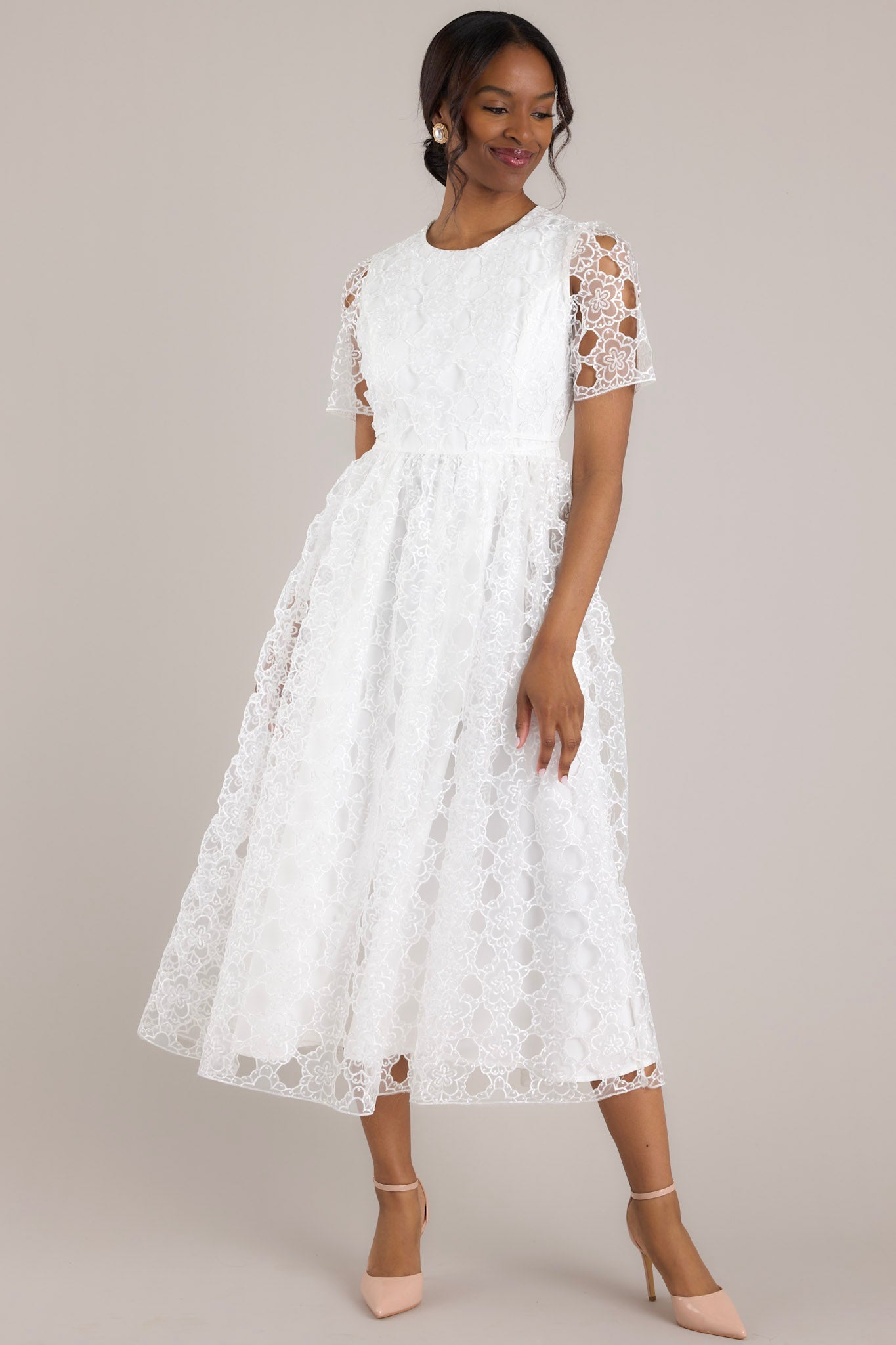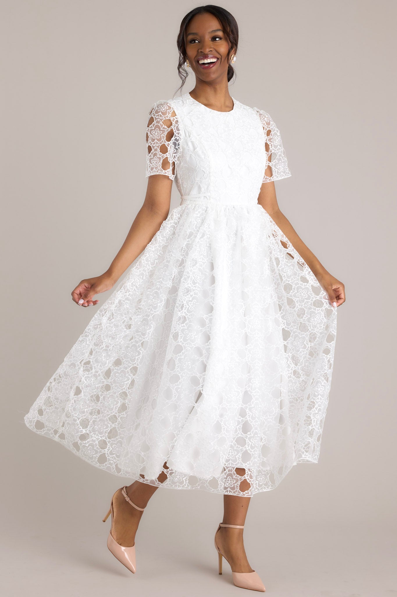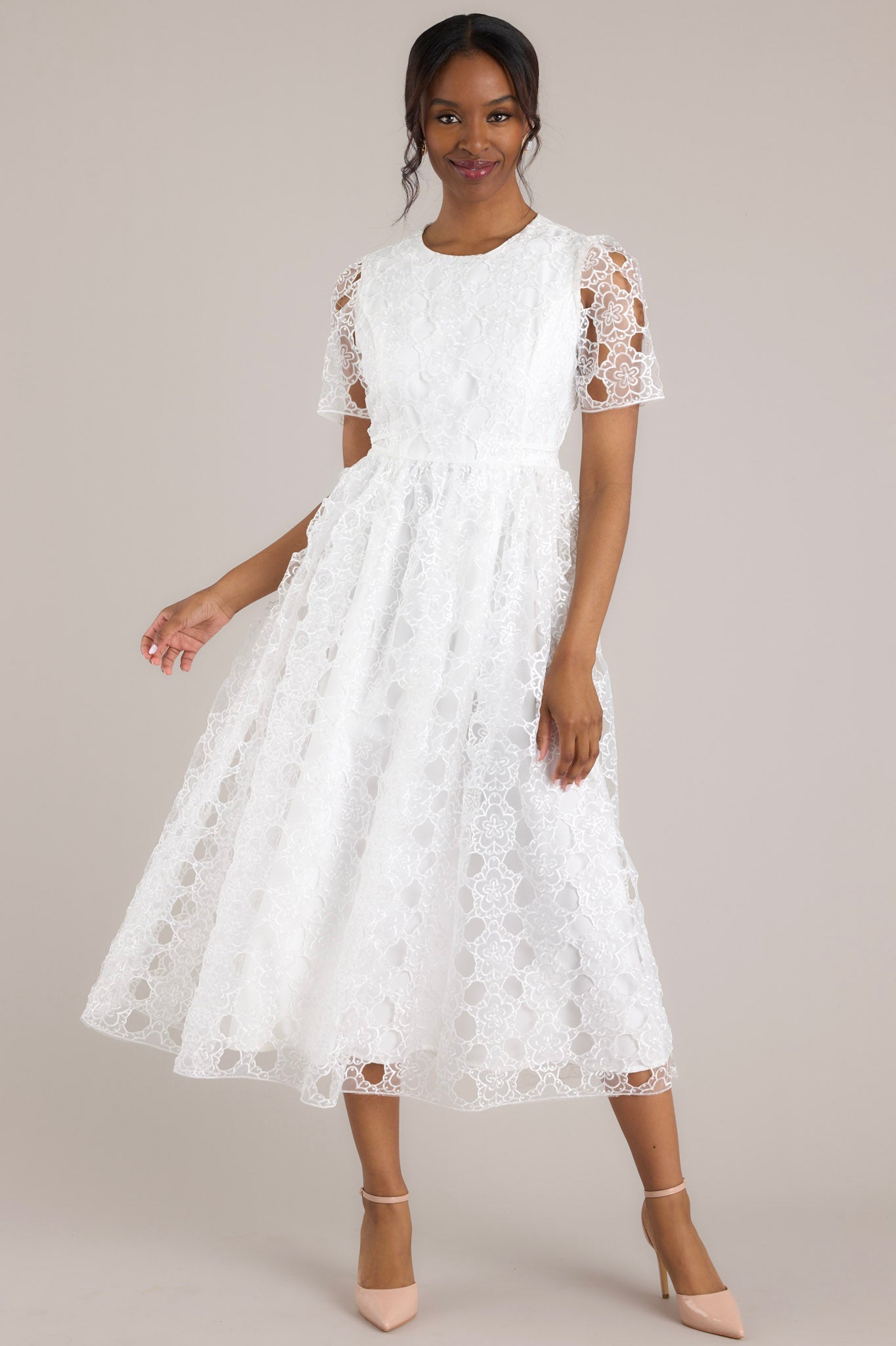 Life’s Pathways White Floral Embroidered Midi Dress