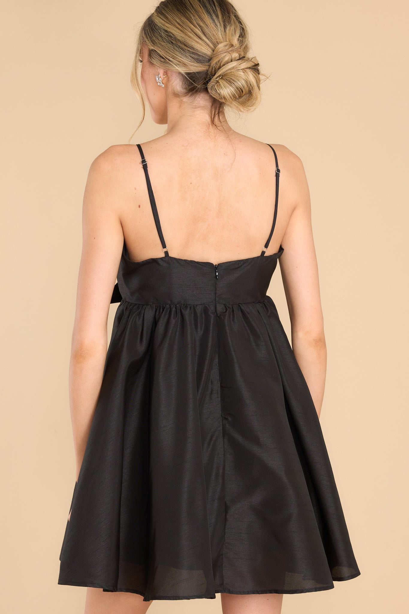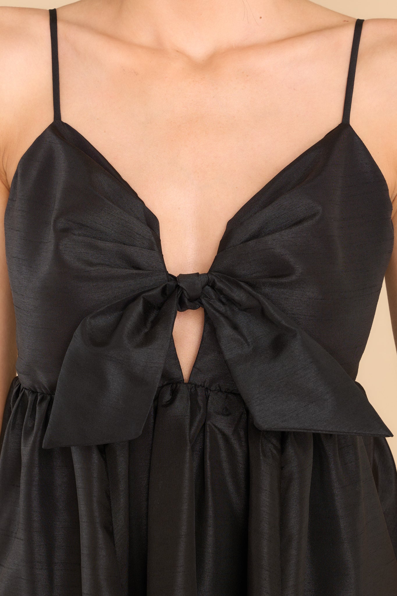 Get ready for more than just another party! This glamorous mini dress is made for Lifetime Celebrations, moments that only happen once! Toast the occasion looking fabulous! This dress features a sweetheart neckline with a key hole detail on the bust, the bow at the bust is non-adjustable, adjustable spaghetti straps, zipper on the back, and a babydoll silhouette. Model is wearing a small. • 100% Polyester • Hand Wash Cold • Lined 100% Polyester • Imported