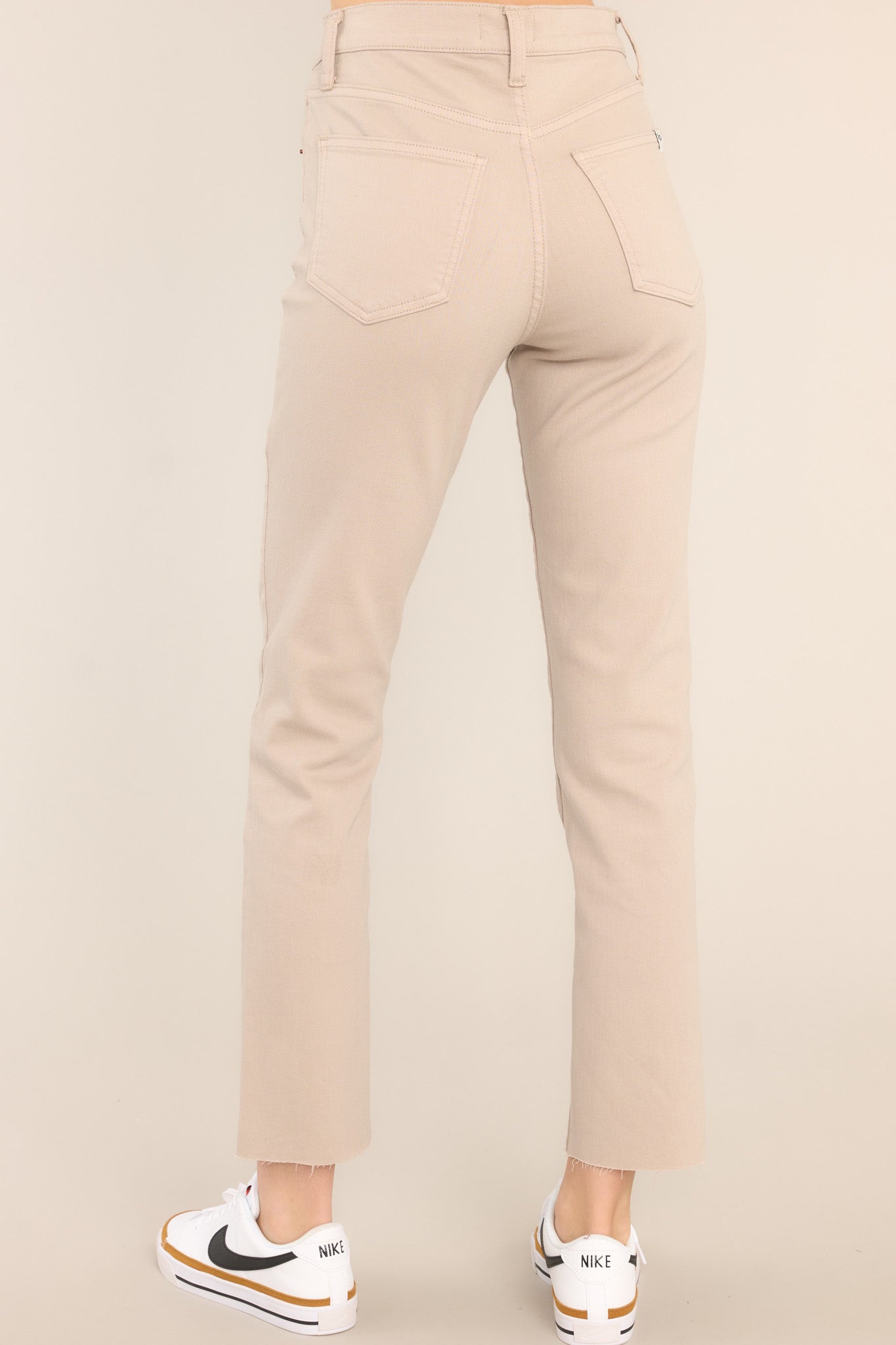 Conquer your day in style with our Made It Through Natural High Rise Straight Leg Crop Jeans. Made with durable fabric and a flattering fit, these jeans will keep you comfortable and confident from morning to night. Make it through anything with these stylish and versatile jeans! These natural colored jeans feature a high waisted deign, a zipper and button closure, functional belt loops and pockets, and a raw hemline. With their timeless straight leg design, these jeans are perfect for adding a subtle touch of style to any outfit.