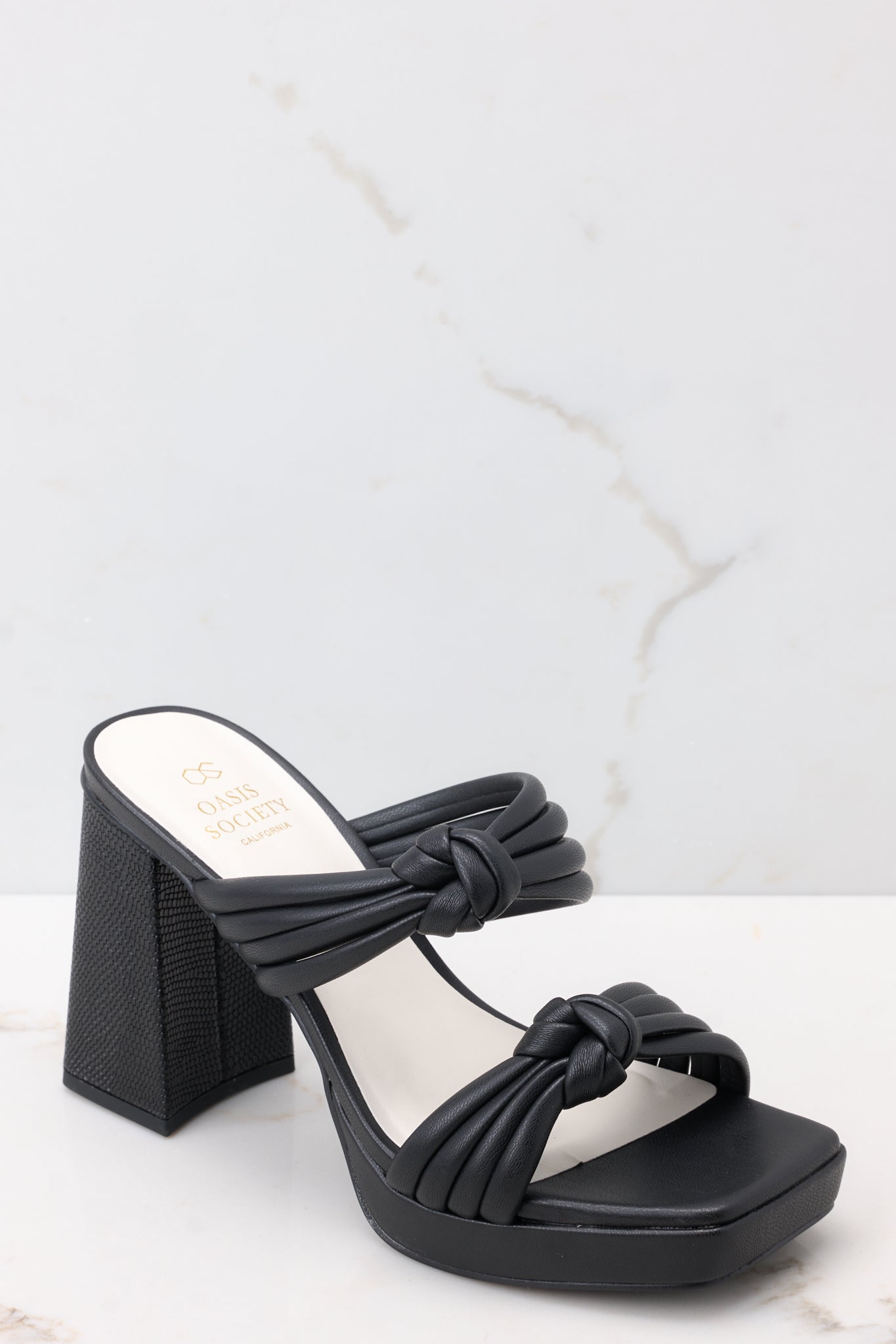 Strut your stuff in these classic black Made to Believe Black Heels! Step into a look that's timeless but modern, sure to get your audience's attention and hearts racing! Perfect for a night out, special occasion, or simply to show out in style. These black heels feature a square toe, two straps across the top of the foot with knotted detailing, a small platform, and a block heel.