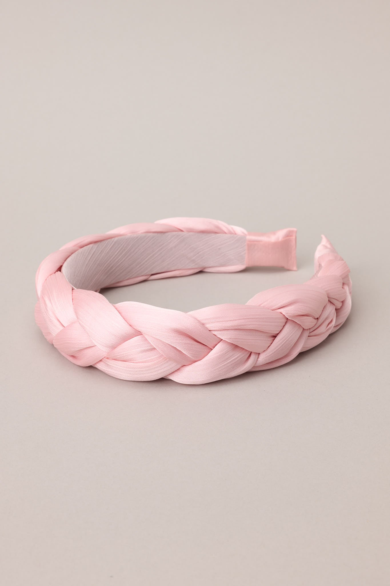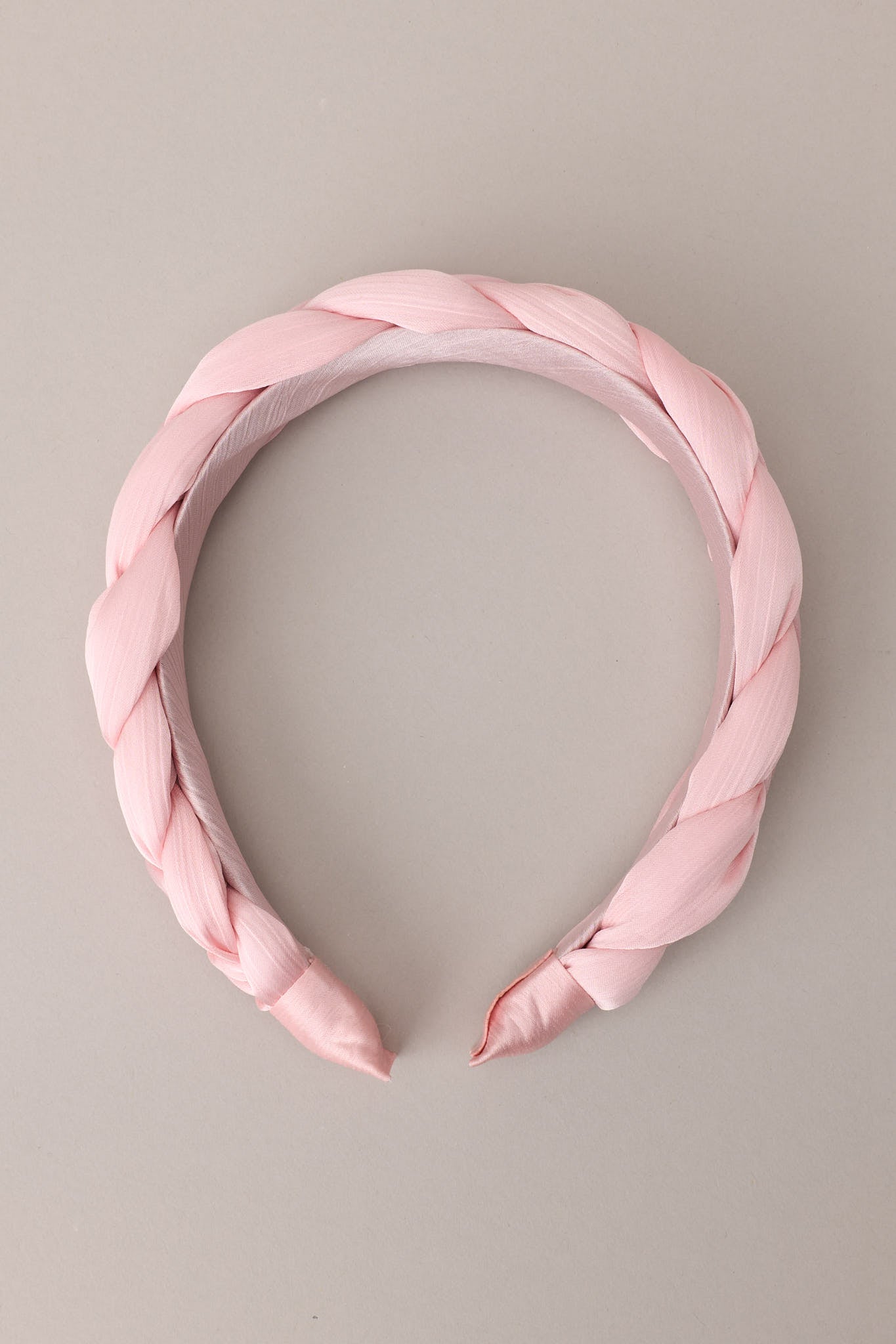 Add a touch of fun to your hairstyles with our Moments of Me Light Pink Braided Headband! This stylish accessory is perfect for everyday wear and adds a pop of color to any outfit. The braided design adds texture and dimension to your hairstyle. Give your look a playful twist (literally) with this unique headband! This headband features a thick, soft material, and a braided texture.