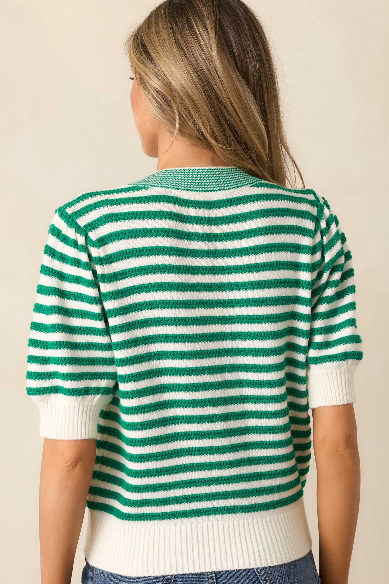 Moon So Bright Green Stripe Short Sleeve Sweater