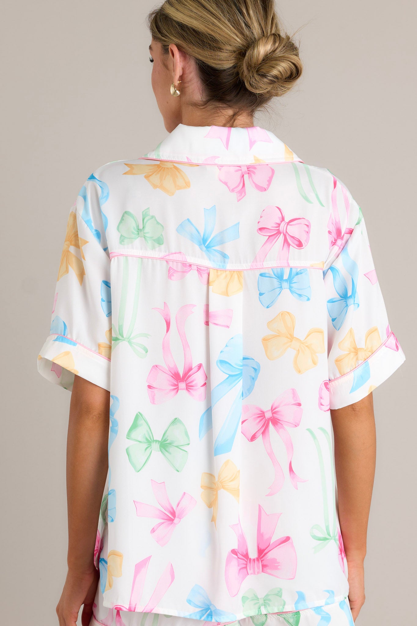 Nightly Necessities White Multi Bow Pajama Top