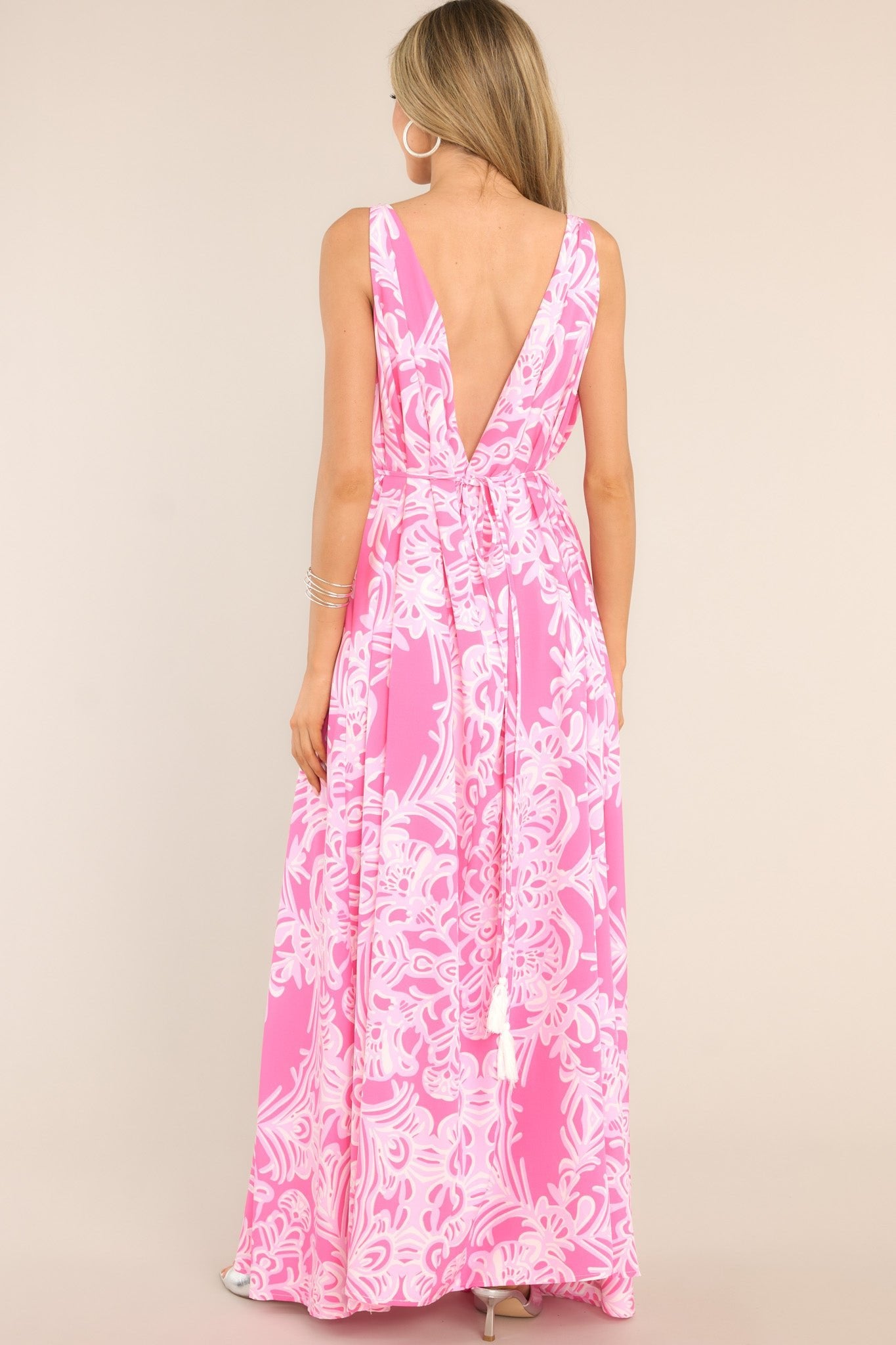 Embrace the sunny days with our Only Clear Skies Pink Maxi Dress. This dress features a vibrant pink color and a flowy maxi design for a breezy and stylish look. Perfect for any outdoor event or simply a day out in the sun. This dress features a v-neckline, an open back, cinching in the bodice, a self-tie feature in the back, and a slit.