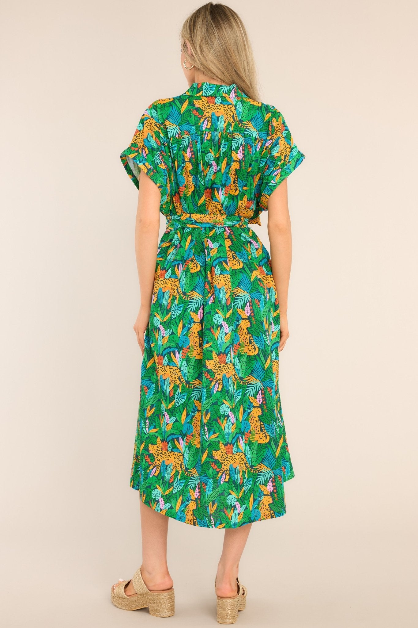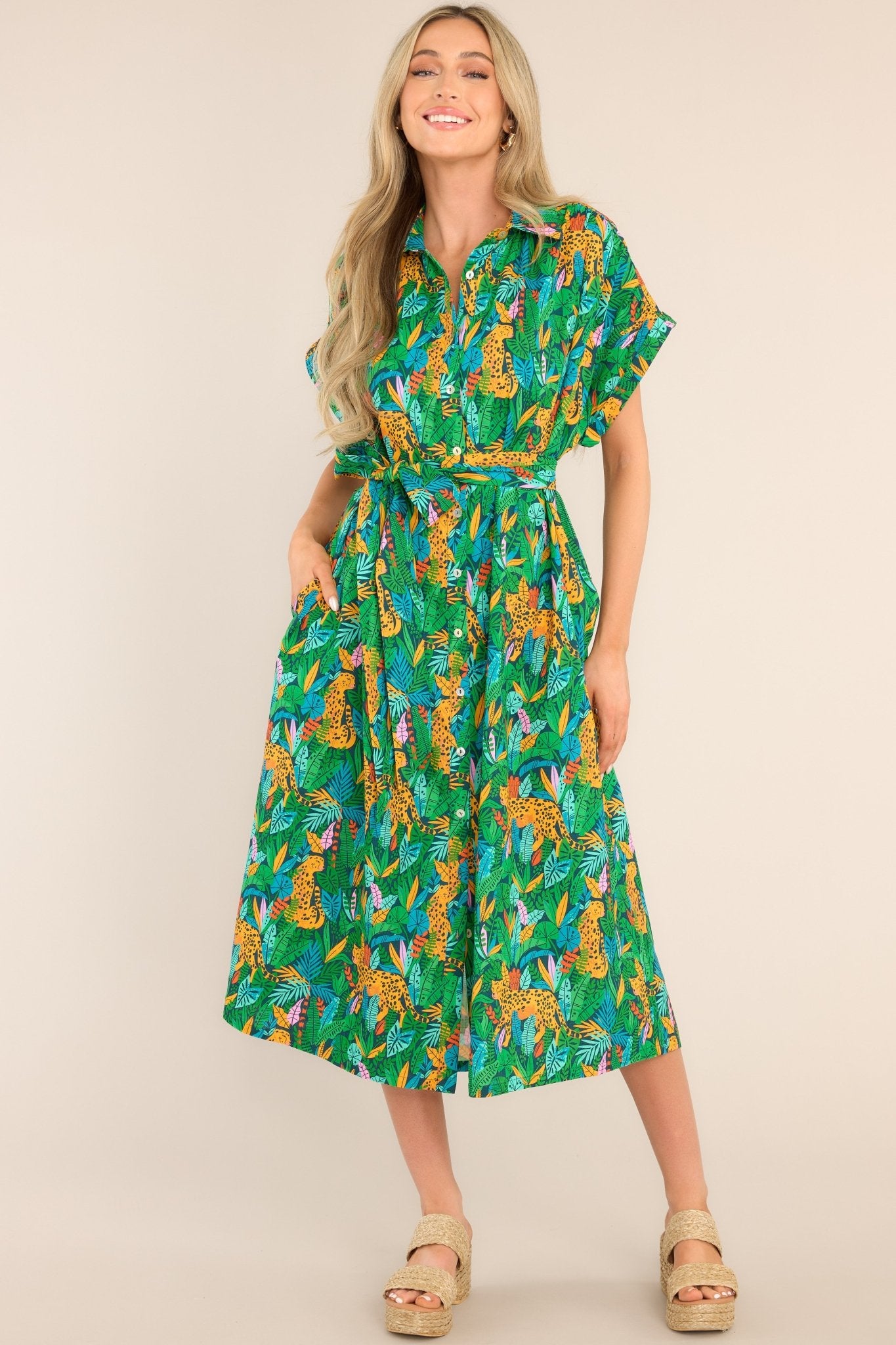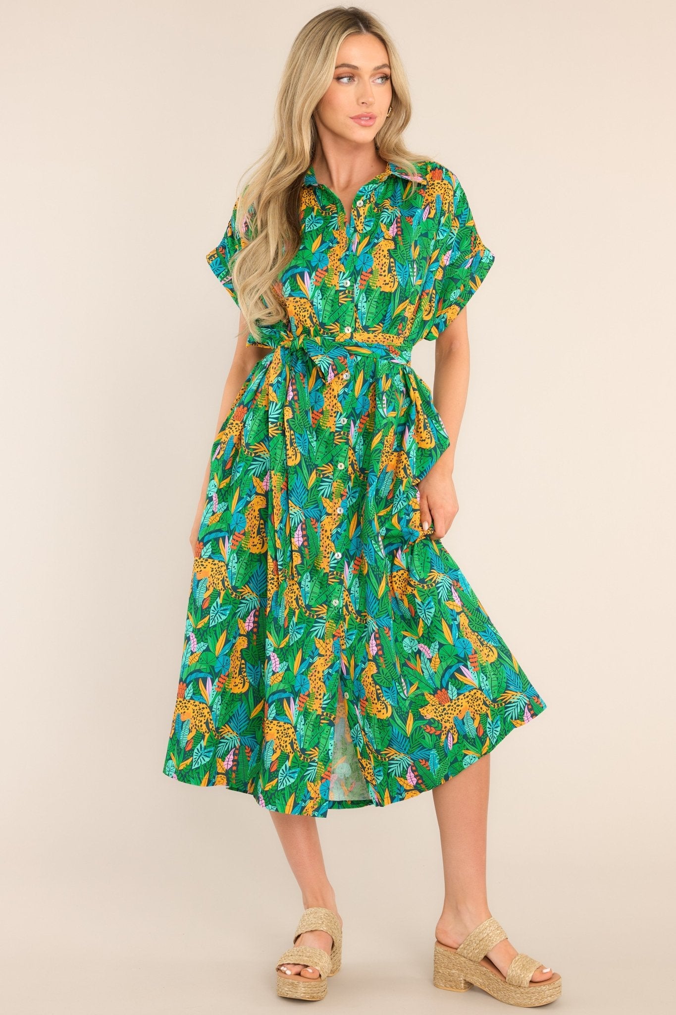 I know you’ve collected an impressive amount of summer outfits so far…but you’re Not Out Of The Woods yet! This bright self-tie green print midi dress will definitely surprise you with its chic silhouette!