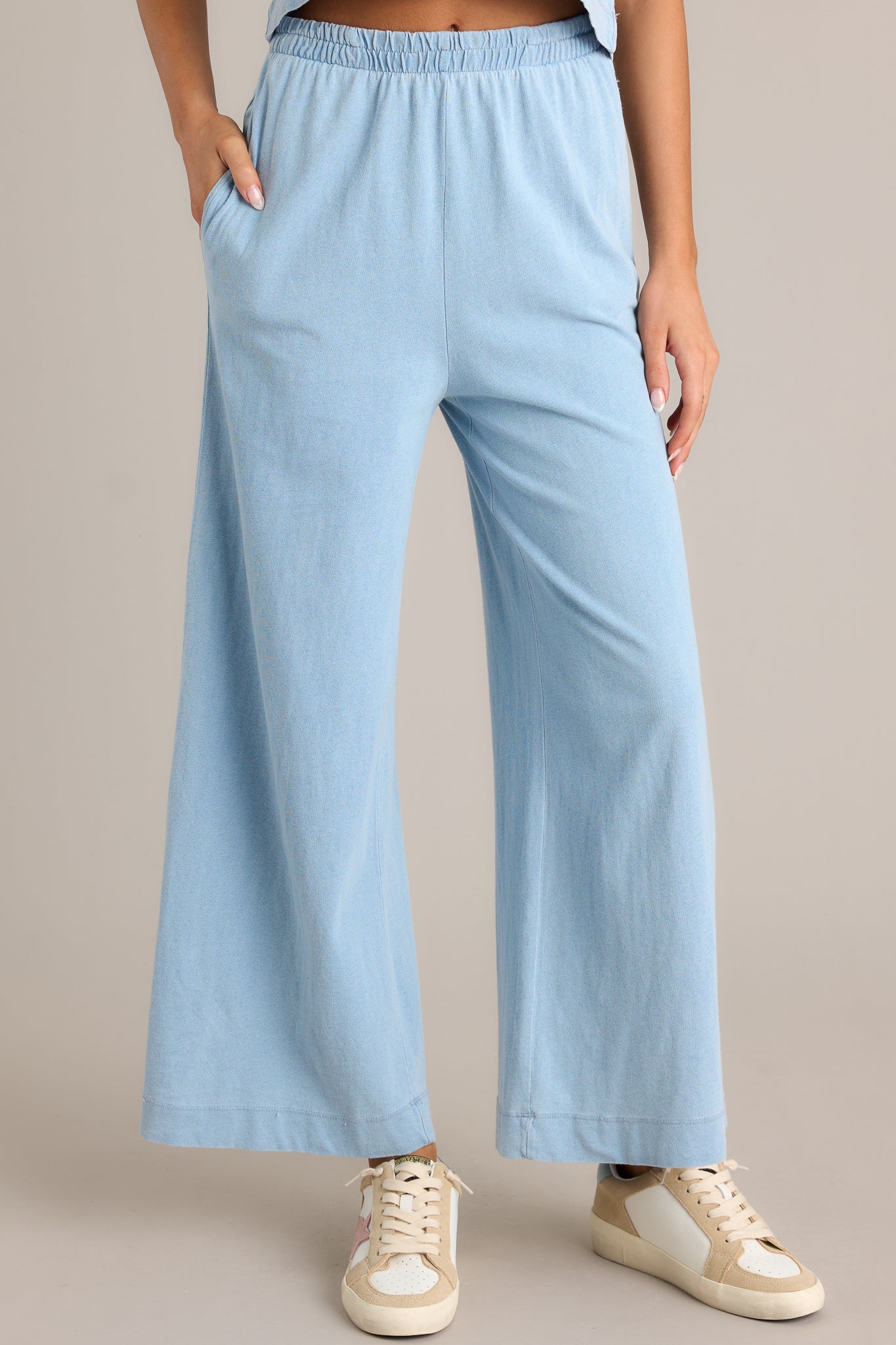 The Scout Washed Indigo Jersey Pants are a necessity for every girls' wardrobe! These wide leg lounge bottoms are so easygoing, with an elastic waistband and a relaxed feel! Could a girl ask for anything more? These pants feature a stretchy waistband, a lightweight fabric, and a wide leg style.